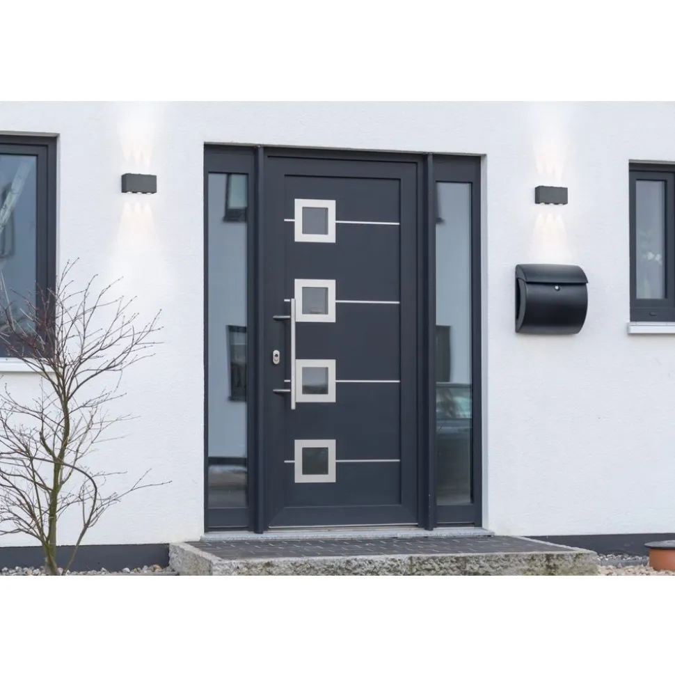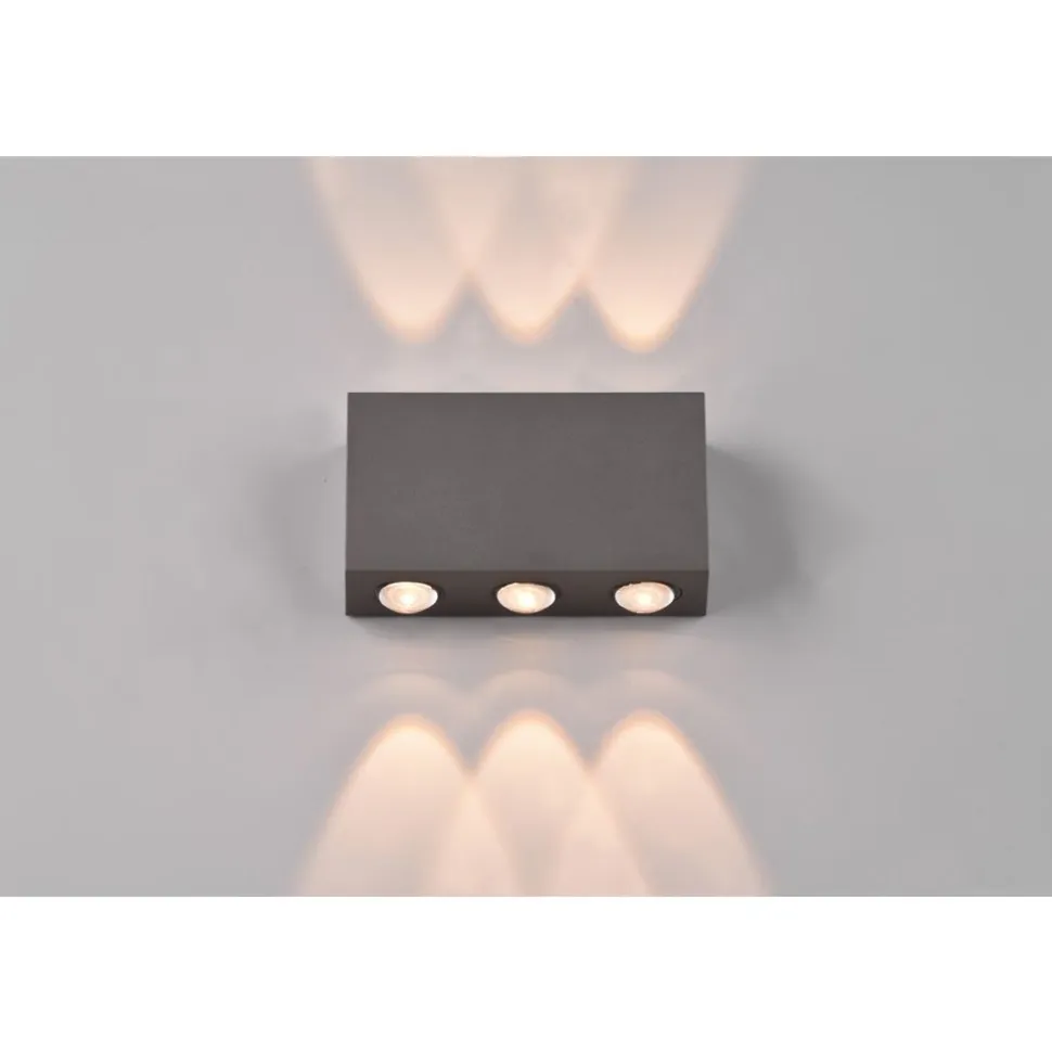Bent u op zoek naar een wandlamp met decoratieve accenten voor uw buitenruimte? Dan is de CLYDE precies geknipt voor u! Met haar puristische uiterlijk vestigt de lamp met haar elegante design ieders aandacht op het decoratieve lichtspel, dat bij het uitstralen van het licht op de huisgevel wordt geprojecteerd. De up & down-verlichting dompelt uw tuin, entree of terras onder in een sfeervolle sfeer. Dankzij de IP54-classificatie is de lamp bovendien beschermd tegen spatwater. De wandlamp van antracietkleurig spuitgegoten aluminium kan eenvoudig in uw buitenruimte worden geïntegreerd. Daarnaast beschikt de lamp over een moderne ledtechnologie die zich onderscheidt met een hoge lichtkwaliteit en energie-efficiëntie. In vergelijking met gewone halogeenlampen kan tot 80% bespaard worden op de energiekosten. Bovendien hebben ledlampen een lange levensduur, produceren minder warmte en zijn milieuvriendelijk.