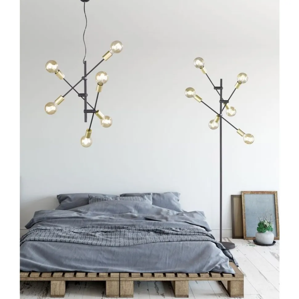 Onconventioneel, creatief en designgericht. Minimalistische armaturen zoals die in de CROSS-serie zetten spannende accenten en zetten ruimtes in het juiste licht. De keuze van kleuren en vormen creëert contrasten – slim gecombineerd creëren ze een gezellig component en een stijlvolle sfeer. De armatuur is een smaakvolle toevoeging aan bijna elk interieur en kan met een diameter van 57 cm in grotere woonkamers of entreezones worden geplaatst. Voor een harmonieus uiterlijk raden we aan een gloeilamp te gebruiken, omdat je direct zicht hebt op de lichtbron. Het eenvoudige, rechtlijnige metalen frame in matzwart met bronskleurige lamphouders zorgt voor een harmonieuze totale look. Voor een energiebesparende verlichting is het gebruik van een ledlichtbron aanbevolen. Deze zijn een optimaal alternatief voor gewone halogeenlampen en staan voor een hoge lichtkwaliteit en een energiebesparing van tot 80%. Bovendien profiteert u bij ledlichtbronnen van een lange levensduur, een geringe warmteontwikkeling en spaart tegelijkertijd het milieu.