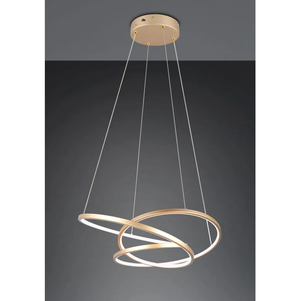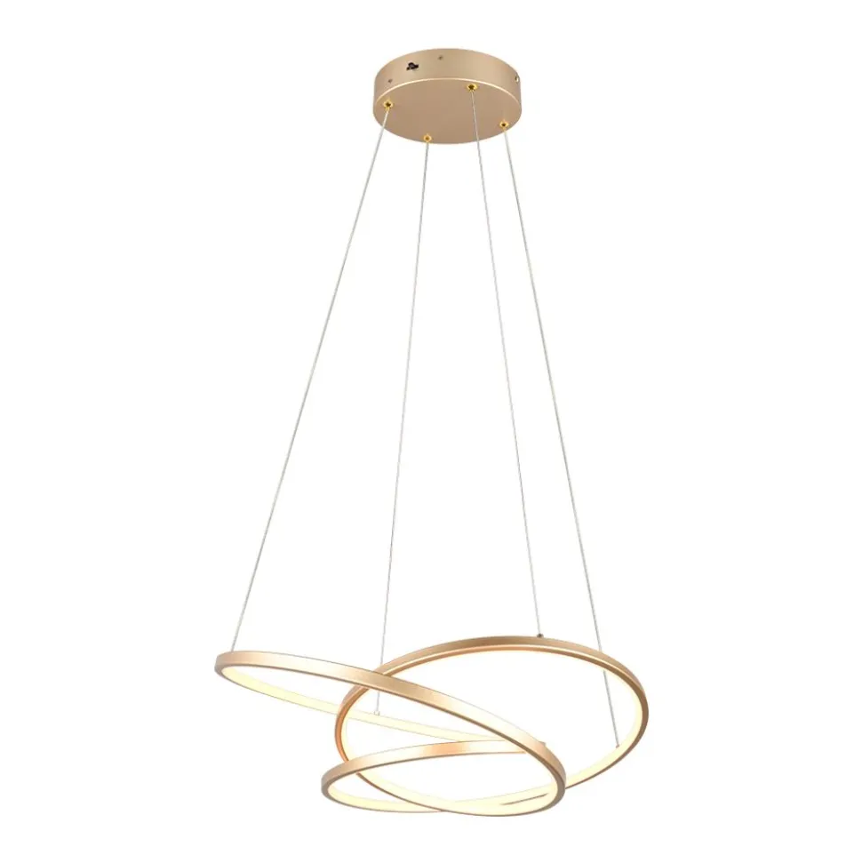 De DARVIN hanglamp is een echte blikvanger voor elke woon- of eetkamer. Het unieke ontwerp creƫert een kunstzinnig gebogen streng en zet nieuwe standaarden. De hoogwaardige LED-strip versterkt niet alleen het esthetische effect, maar zorgt ook voor een efficiƫnte en aangename verlichting. De lichtkleur en helderheid kunnen eenvoudig en traploos worden aangepast met een conventionele lichtschakelaar om de optimale kamerverlichting te creƫren, afhankelijk van de behoeften of het tijdstip van de dag. Deze geslaagde combinatie van creatief design en moderne verlichtingstechnologie maakt van DARVIN een veelzijdig element dat zowel visuele accenten zet als aan de hoogste functionele eisen voldoet. Met zijn elegante goudkleurige uiterlijk past het armatuur tijdloos en modern in elke omgeving en draagt het ook bij aan energie-efficiƫntie. De armatuur is ook voorzien van moderne LED-technologie, die wordt gekenmerkt door een hoge lichtkwaliteit en energie-efficiƫntie. Vergeleken met conventionele halogeenlichtbronnen kan tot 80% op de energiekosten worden bespaard. LED lichtbronnen hebben ook een lange levensduur, produceren minder warmte en beschermen het milieu.