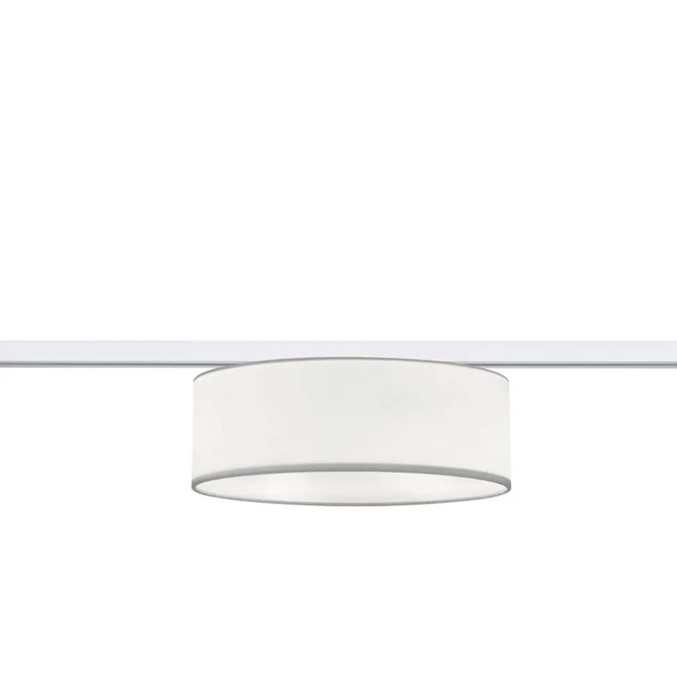 De plafondlamp HOTEL is een verlichtingsvariant voor het DUOline-railsysteem. Het tweefasesysteem is uiterst flexibel en biedt talrijke mogelijkheden voor de individuele lichtvormgeving. Het chique design van de plafondlamp kan veelzijdig gecombineerd worden en kan vrij in het DUOline-railsysteem geplaatst worden. De stoffen kap geeft een aangenaam zacht licht af en verleent woonruimtes een gezelllig karakter. Het strakke witte kleurschema vergemakkelijkt de integratie in aanwezige kleurconcepten. Voor een energiebesparende verlichting is het gebruik van een ledlichtbron aanbevolen. Deze zijn een optimaal alternatief voor gewone halogeenlampen en staan voor een hoge lichtkwaliteit en een energiebesparing van tot 80%. Bovendien profiteert u bij ledlichtbronnen van een lange levensduur, een geringe warmteontwikkeling en spaart tegelijkertijd het milieu.