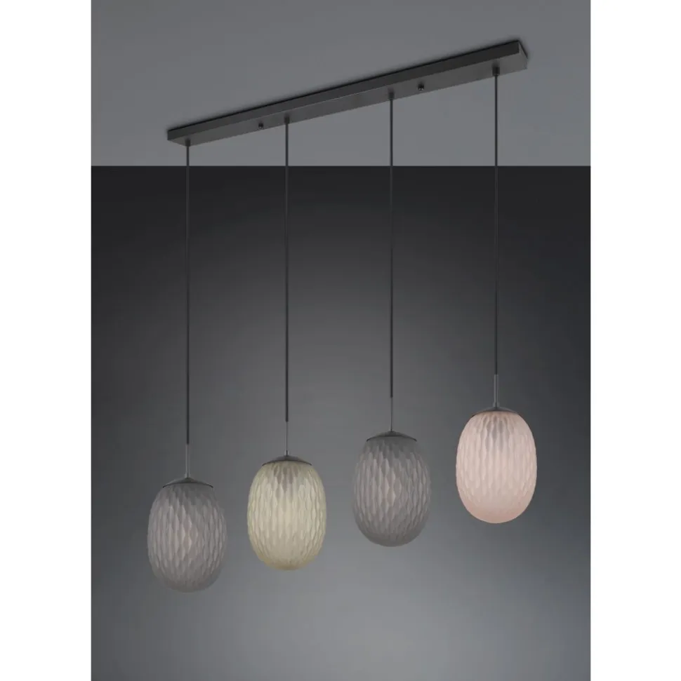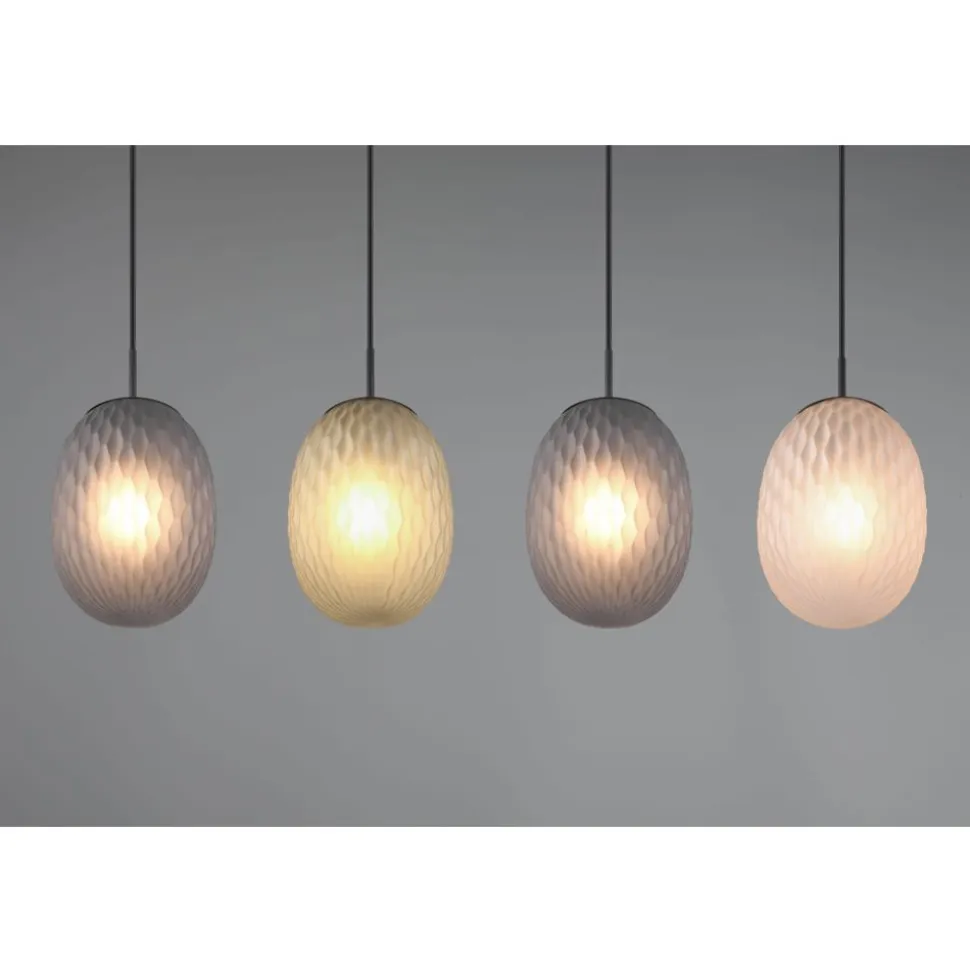 Gekleurde glazen met opvallende reliëfs zijn erg populair – net als het FACETTE-assortiment! Het samenspel van vormen, creatieve details en matte kleuren laat een blijvende indruk na en creëert onvergetelijke accenten in je woonruimte. Of het nu boven de eettafel of het aanrecht is, de vier-lichts pendelarmatuur maakt indruk met zijn niet-verblindende lichtverdeling en oogverblindende reflecties. Het kleurontwerp in groen, amber en rook maakt de armatuur tot een echte blikvanger en zorgt voor een indrukwekkend lichteffect. Het gebruik van LED lichtbronnen wordt aanbevolen voor energiebesparende verlichting. Deze vormen een ideaal alternatief voor conventionele halogeenlichtbronnen en bieden een hoge lichtkwaliteit en energiebesparingen tot 80%. Met LED lichtbronnen profiteert u ook van een lange levensduur en een lage warmteontwikkeling, terwijl het milieu wordt beschermd.