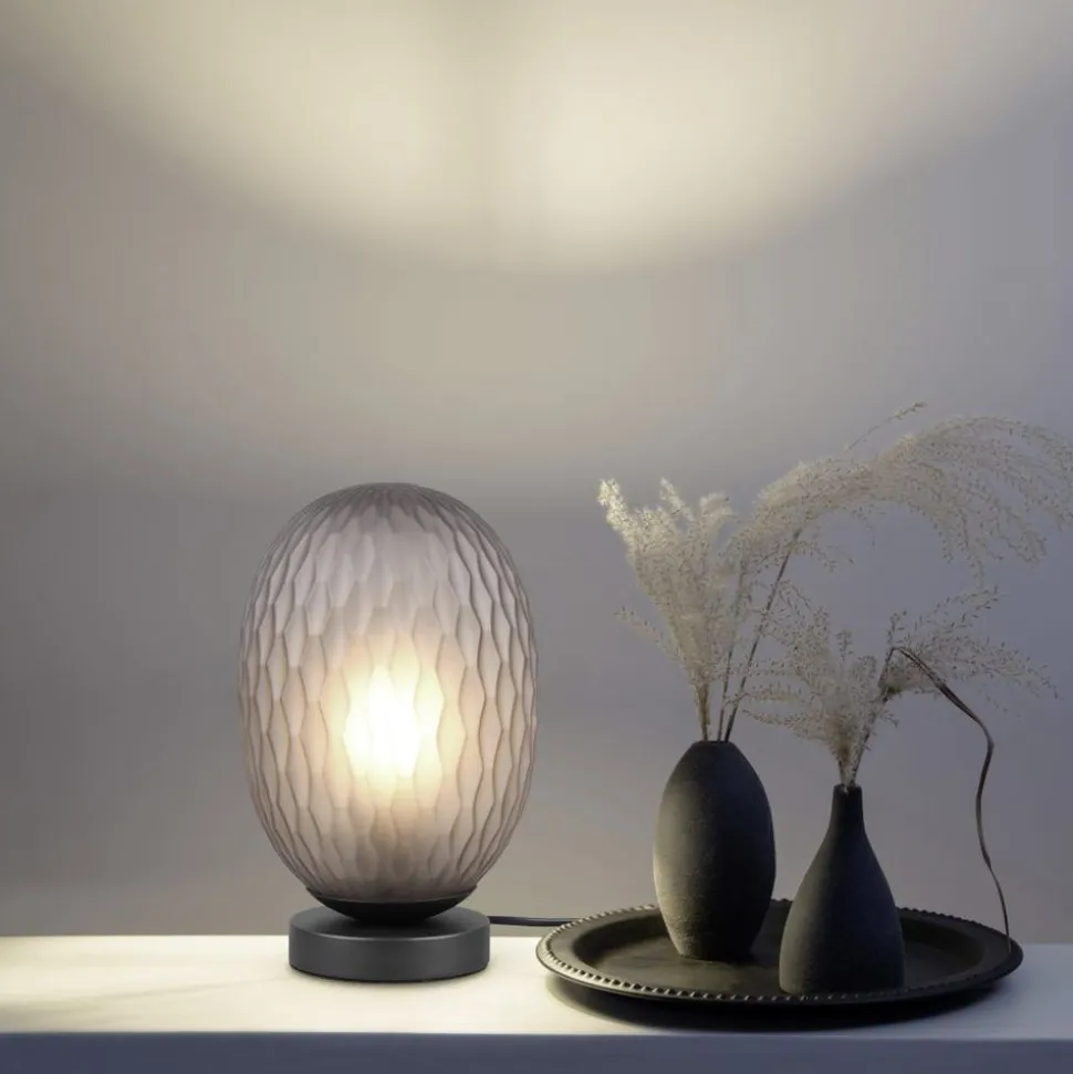Gekleurde glazen met opvallende reliĆ«fs zijn erg populair – net als het FACETTE-assortiment! Het samenspel van vormen, creatieve details en matte kleuren laat een blijvende indruk achter en zorgt voor onvergetelijke accenten in je woonruimte. Of het nu op een ladekast of een nachtkastje is, de tafellamp zal je fascineren met zijn niet-verblindende lichtverdeling en oogverblindende reflecties. De combinatie van zwart mat metaal en rookkleurig glas maakt de armatuur tot een echte blikvanger en zorgt voor een indrukwekkend lichteffect. Het gebruik van LED lichtbronnen wordt aanbevolen voor energiebesparende verlichting. Deze vormen een ideaal alternatief voor conventionele halogeenlichtbronnen en bieden een hoge lichtkwaliteit en energiebesparingen tot 80%. Met LED lichtbronnen profiteert u ook van een lange levensduur en een lage warmteontwikkeling, terwijl het milieu wordt beschermd.