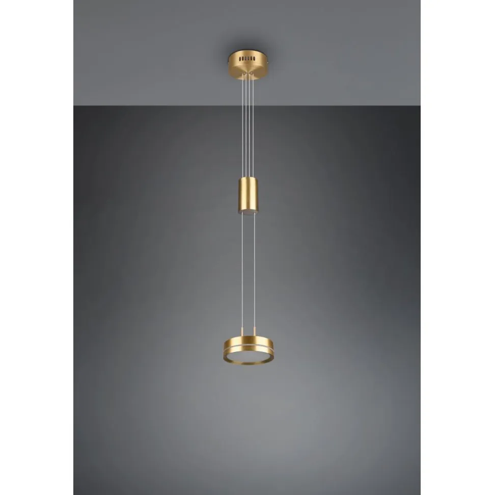 Praktisch, functioneel en stijlvol! De lamp FRANKLIN bekoort met haar moderne, futuristische look. Bovendien is de pendellamp heel gemakkelijk in de hoogte verstelbaar, waardoor ze ideaal voor de woonzone is. Perfecte setting: Meerdere lampen in een rij over een langwerpige eettafel of keukenbar gehangen. De geïntegreerde SWITCH-dimmer maakt verschillende helderheidsniveaus mogelijk en zorgt voor passende lichtstemmingen. Dankzij het kleurenschema in mat messing zet de lamp stijlvolle accenten en wordt ze een blikvanger in uw interieur. Daarnaast beschikt de lamp over een moderne ledtechnologie die zich onderscheidt met een hoge lichtkwaliteit en energie-efficiëntie. In vergelijking met gewone halogeenlampen kan tot 80% bespaard worden op de energiekosten. Bovendien hebben ledlampen een lange levensduur, produceren minder warmte en zijn milieuvriendelijk.