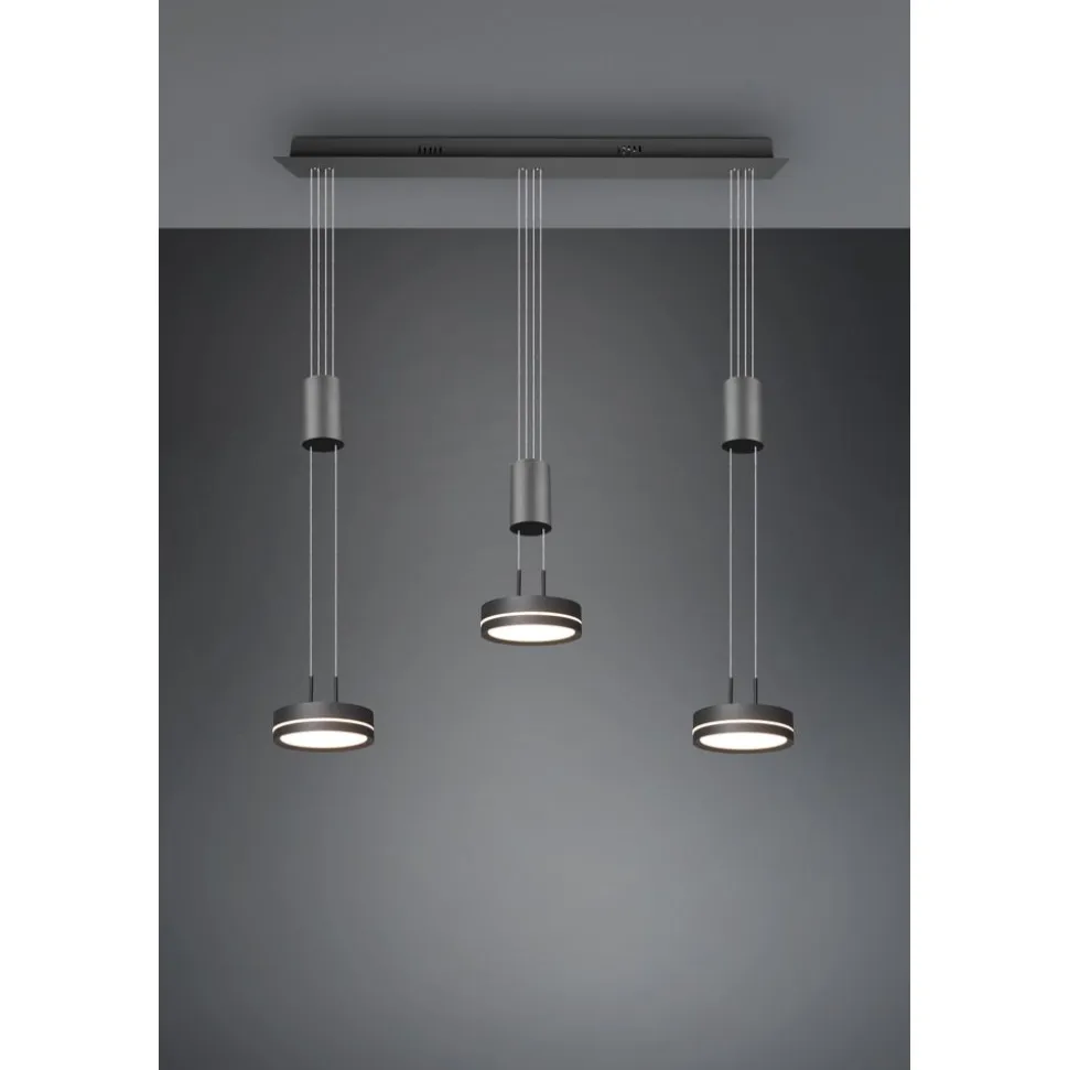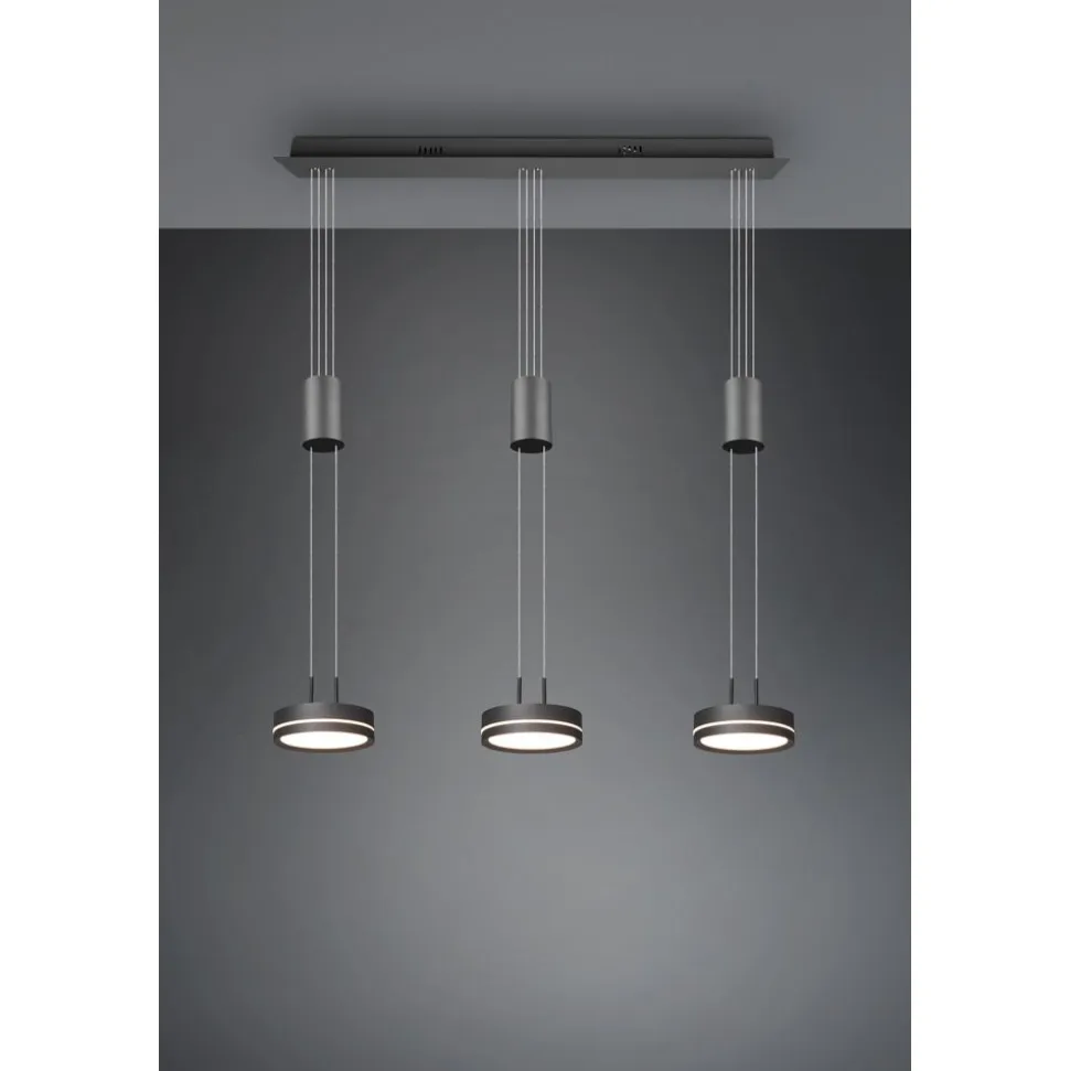 Praktisch, functioneel en stijlvol! De lamp FRANKLIN bekoort met haar moderne, futuristische look. Bovendien zijn de aparte lichtbronnen heel gemakkelijk in de hoogte verstelbaar, waardoor de lamp ideaal voor de woonzone is. Hangend boven een langwerpige eettafel of keukenbar komt de pendellamp optimaal tot uiting. De geïntegreerde SWITCH-dimmer maakt verschillende helderheidsniveaus mogelijk en zorgt voor passende lichtstemmingen. Dankzij het kleurenschema in antraciet zet de lamp moderne accenten en kan met aanwezig meubilair gecombineerd worden. Daarnaast beschikt de lamp over een moderne ledtechnologie die zich onderscheidt met een hoge lichtkwaliteit en energie-efficiëntie. In vergelijking met gewone halogeenlampen kan tot 80% bespaard worden op de energiekosten. Bovendien hebben ledlampen een lange levensduur, produceren minder warmte en zijn milieuvriendelijk.