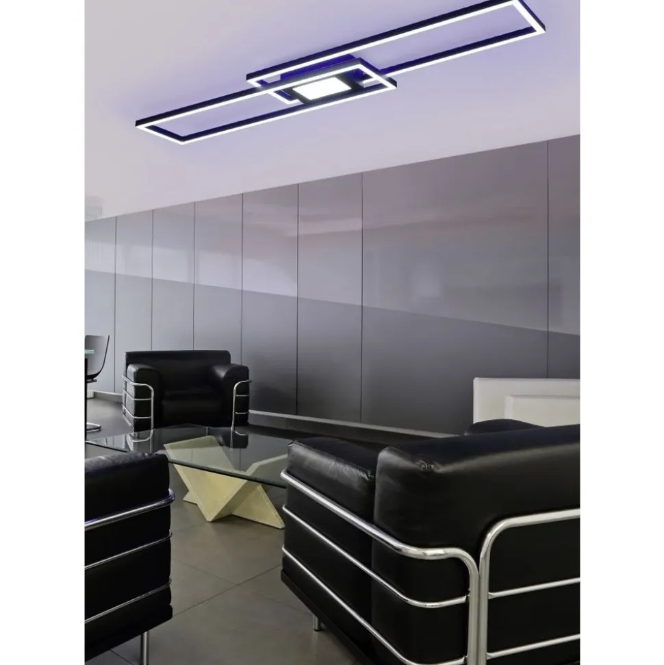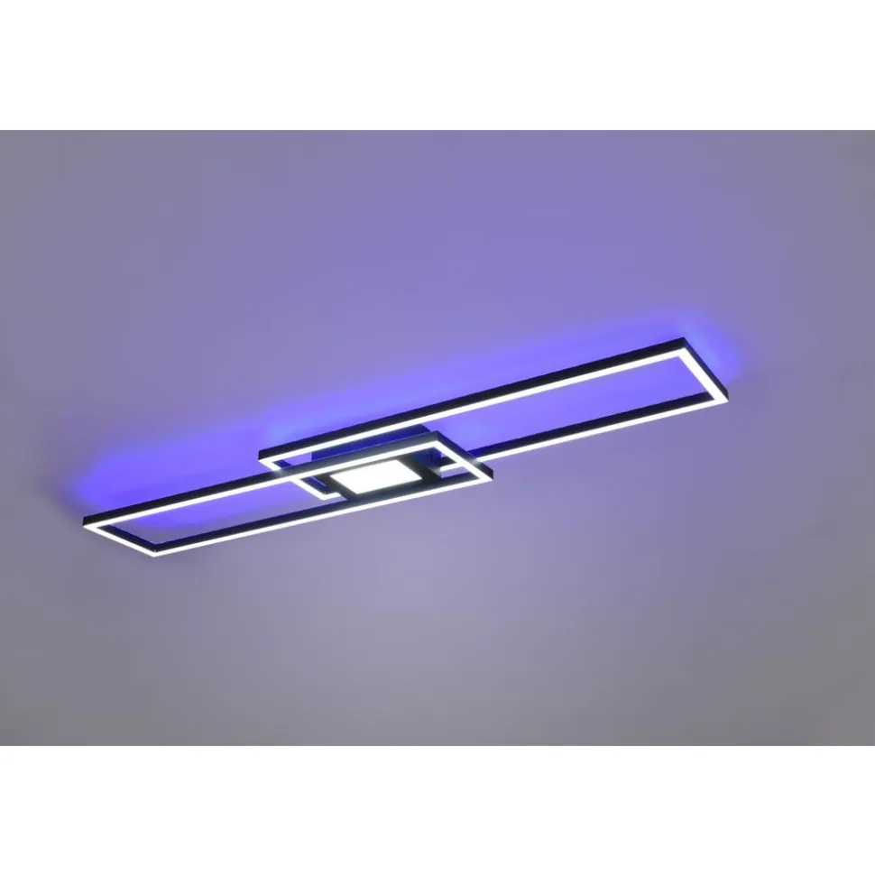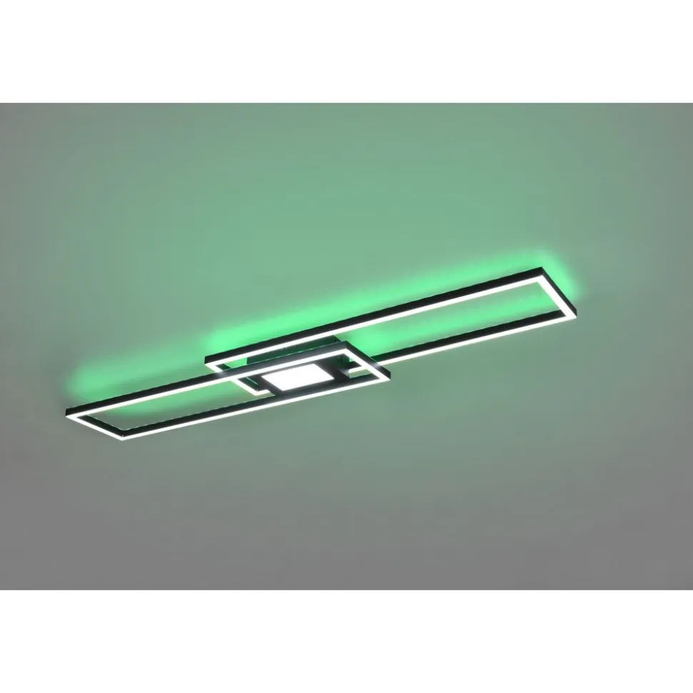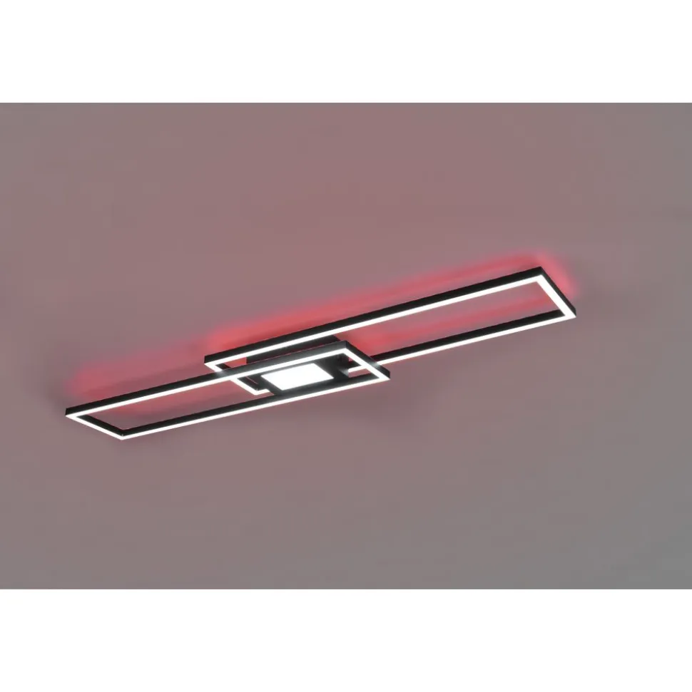 Lichtideeën met kleureigenschappen. De ledlamp GANADO creëert het passende licht voor elke stemming en situatie. Verschillend gericht en duidelijk geordend laten de lichtelementen zich naar believen aanpassen op het gebied van helderheid en lichtkleur. Bovendien zorgt de apart schakelbare, indirecte verlichting in RGB-kleuren voor een aangename lichtsfeer. Alle instellingen kunnen gemakkelijk geregeld worden via de afstandsbediening. Door het moderne kleurenschema in mat zwart kan de lamp probleemloos met aanwezig mobilair gecombineerd worden. Daarnaast beschikt de lamp over een moderne ledtechnologie die zich onderscheidt met een hoge lichtkwaliteit en energie-efficiëntie. In vergelijking met gewone halogeenlampen kan tot 80% bespaard worden op de energiekosten. Bovendien hebben ledlampen een lange levensduur, produceren minder warmte en zijn milieuvriendelijk.