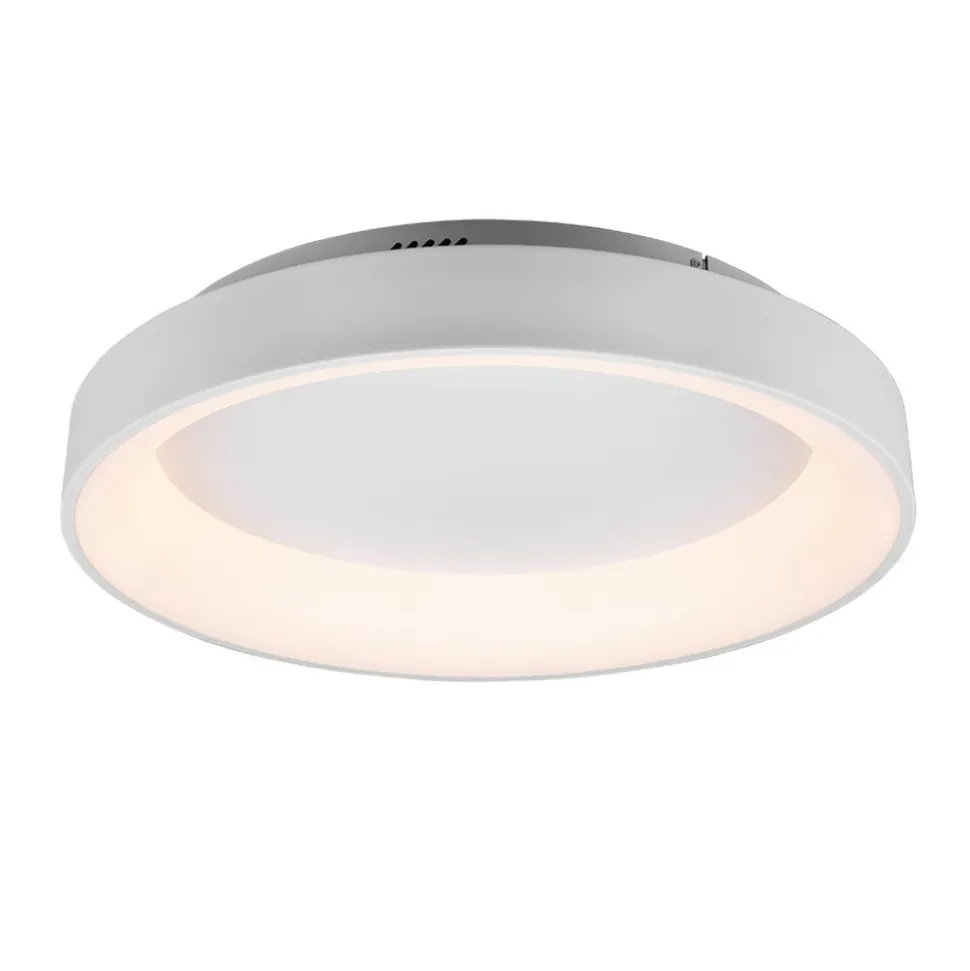 Een gereduceerd en eenvoudig interieur wordt steeds populairder en zorgt voor een harmonische omgeving. De plafondlamp GIRONA is dankzij haar somber design en de heldere ronde vorm ideaal om een minimalistische woonstijl te verwezenlijken. Via een afstandsbediening kunnen de lichtintensiteit en de lichtkleur heel gemakkelijk en individueel volgens uw wensen ingesteld worden, zodat er te allen tijde optimale lichtomstandigheden gecreëerd kunnen worden. De sombere kleur mat wit onderstreept de minimalistische interieurstijl en zorgt voor een heldere, vriendelijke sfeer. Daarnaast beschikt de lamp over een moderne ledtechnologie die zich onderscheidt met een hoge lichtkwaliteit en energie-efficiëntie. In vergelijking met gewone halogeenlampen kan tot 80% bespaard worden op de energiekosten. Bovendien hebben ledlampen een lange levensduur, produceren minder warmte en zijn milieuvriendelijk.