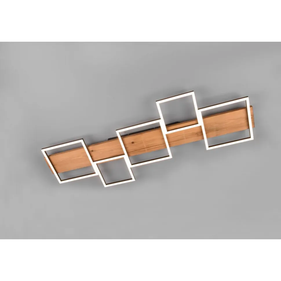 De plafondlamp Harper belooft comfort en elegantie in uw huis dankzij haar moderne design. De combinatie van de materialen hout en metaal onderstreept de elegante woonstijl en zorgt met de vijf vierkante lichtelementen voor een aangename verlichting boven de eettafel. Bovendien heeft de lamp een SWITCH-dimmer en kan zo de helderheid met een conventionele lichtschakelaar worden aangepast van 100% naar 50% en 25%. De lamp wordt in uw woonkamer een echt pronkstuk dankzij het natuurlijke hout en metaal in mat zwart, dat gegarandeerd voor een blikvanger zorgt. Daarnaast beschikt de lamp over een moderne ledtechnologie die zich onderscheidt met een hoge lichtkwaliteit en energie-efficiëntie. In vergelijking met gewone halogeenlampen kan tot 80% bespaard worden op de energiekosten. Bovendien hebben ledlampen een lange levensduur, produceren minder warmte en zijn milieuvriendelijk.