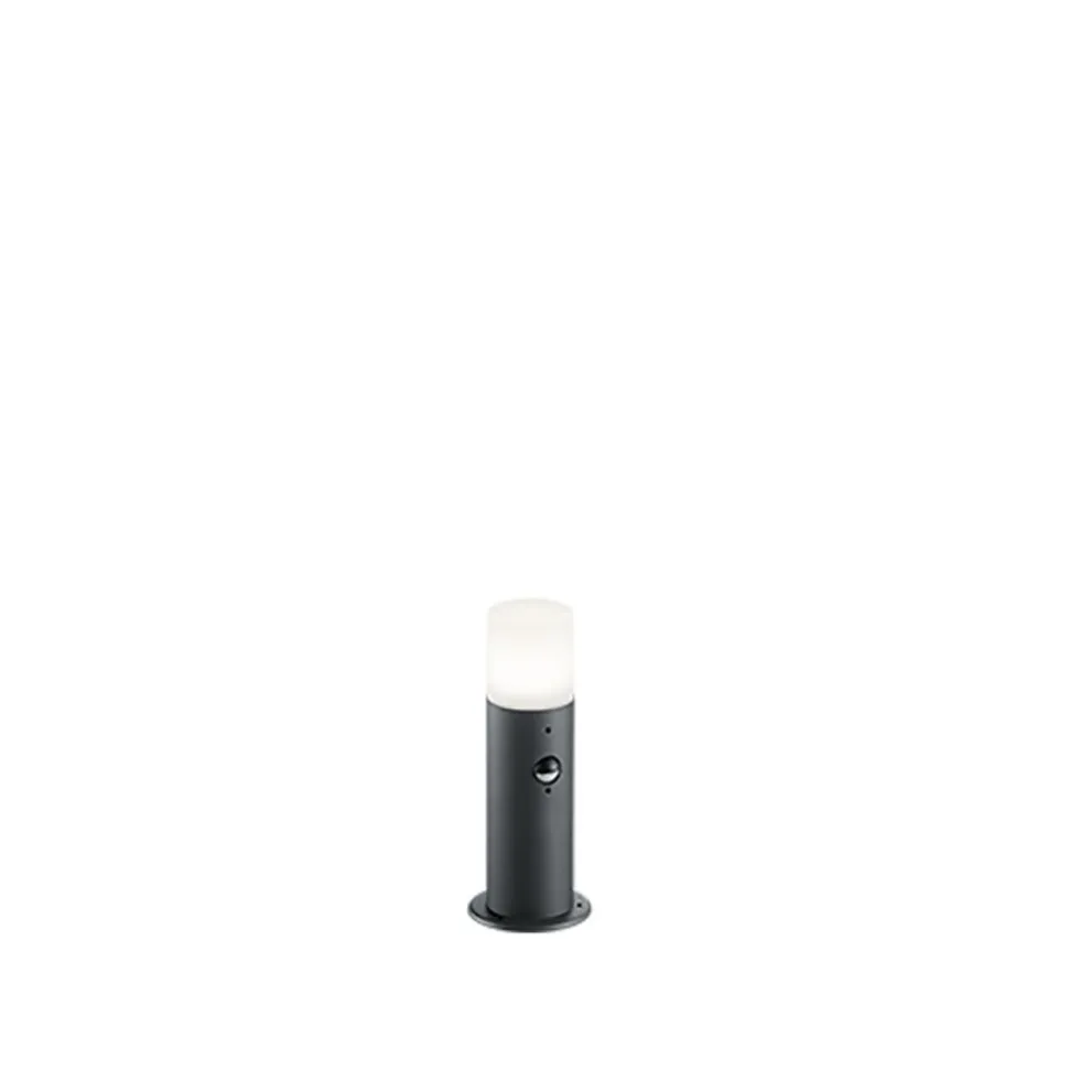 Decoratief en functioneel – de HOOSIC padverlichting met geïntegreerde bewegingssensor. In het donker ontvouwt de armatuur haar volle effect en schijnt het licht gelijkmatig in de buitenruimte, waardoor een effectieve en aangename lichtintensiteit ontstaat. Dankzij het weerbestendige spuitgietaluminium in combinatie met wit kunststof en de IP44-beschermingsgraad is de padlamp met een hoogte van 30 cm en een diameter van 9 cm ideaal om je buitenruimte te verlichten. De geïntegreerde bewegingsmelder heeft een detectiehoek van 120 en een bereik tot 8 meter. De verlichtingsduur kan individueel worden ingesteld van vijf seconden tot zeven minuten. Het antracietkleurige design kan veelzijdig gecombineerd worden en zorgt voor een modern uitzicht. Voor een energiebesparende verlichting is het gebruik van een ledlichtbron aanbevolen. Deze zijn een optimaal alternatief voor gewone halogeenlampen en staan voor een hoge lichtkwaliteit en een energiebesparing van tot 80%. Bovendien profiteert u bij ledlichtbronnen van een lange levensduur, een geringe warmteontwikkeling en spaart tegelijkertijd het milieu.