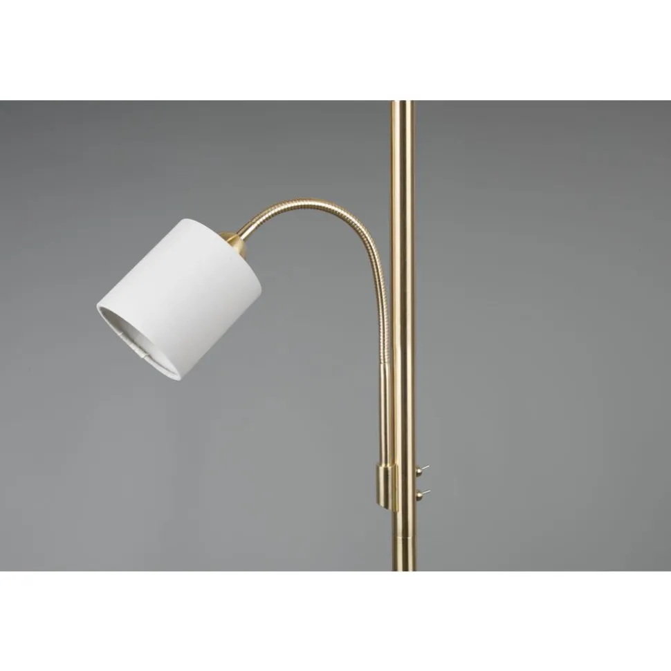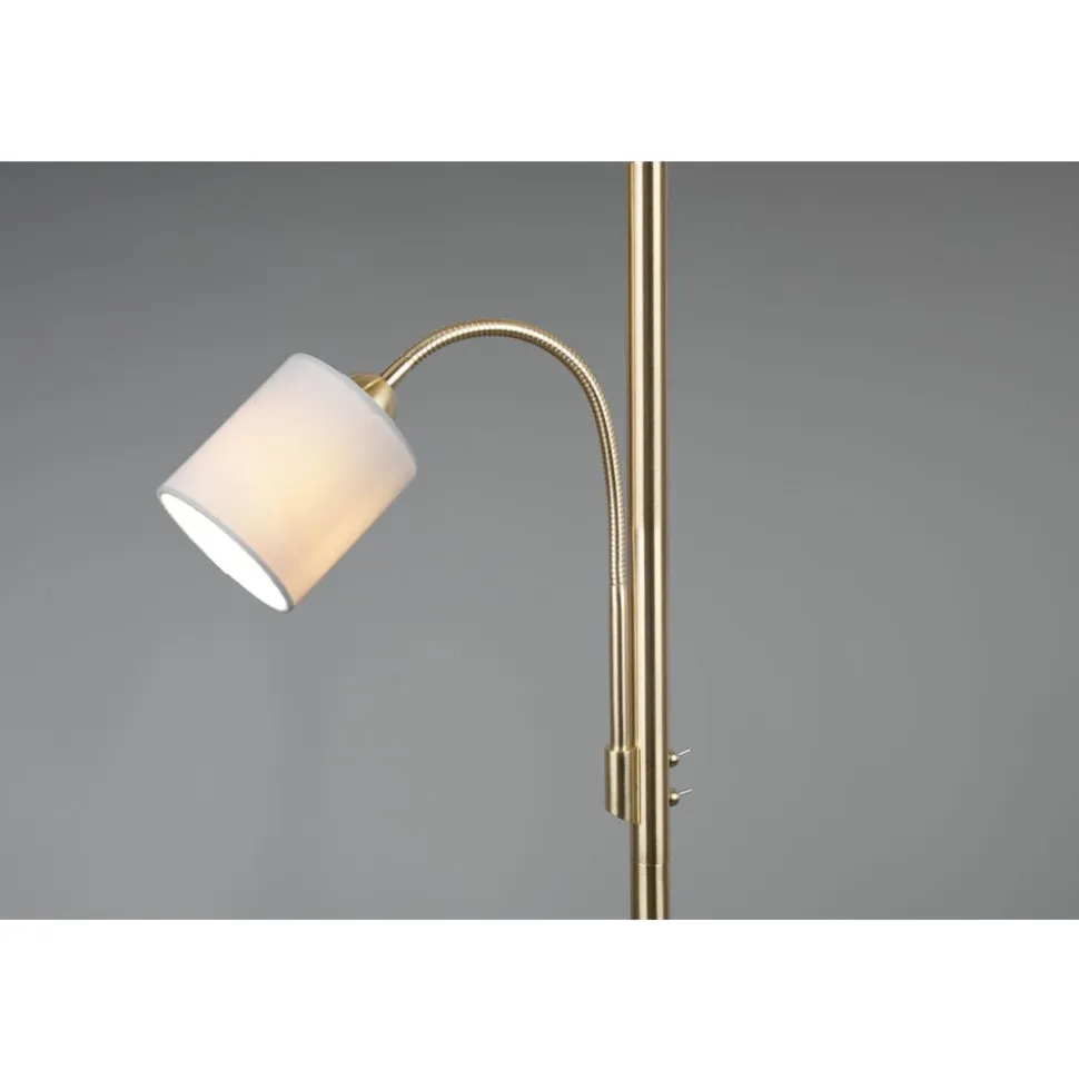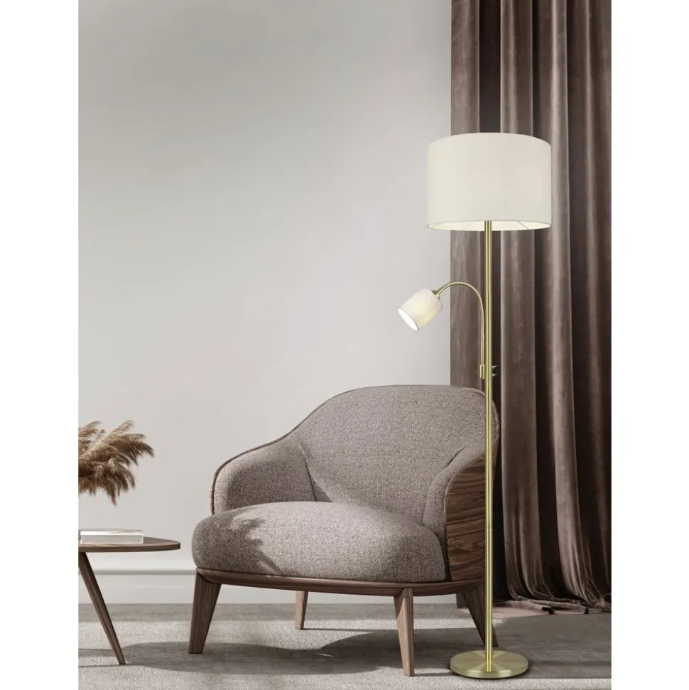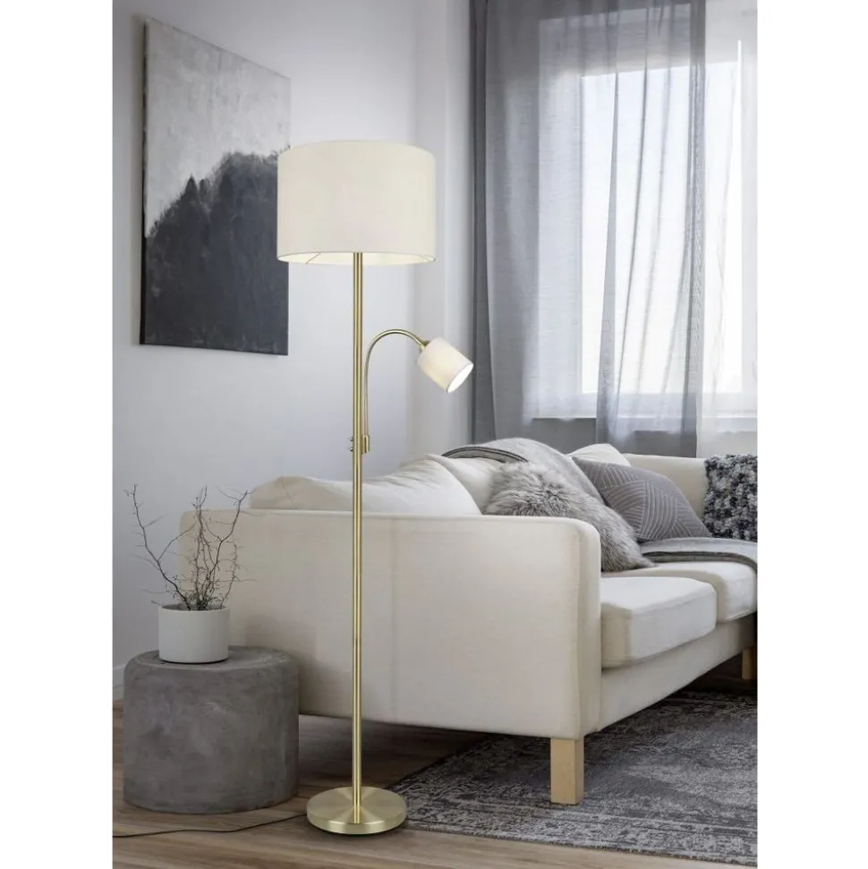 Lampen met stoffen kappen zorgen voor een sfeervolle stemming en behaaglijkheid. Via de stoffen kap wordt het licht zacht aan de omgeving afgegeven en wordt gezelligheid gecreƫerd. Idealiter krijgt de staande lamp HOTEL een plaats naast de sofa, want voor het best mogelijke licht zorgt naast de hoofdlichtbron een flexibele leesarm die apart geschakeld kan worden. De strakke vorm zorgt voor een aangename woonsfeer en geldt als klassieker in de decoratieve verlichting. Door de smaakvolle combinatie van de beige kap met messing creƫert de lamp een stijlvolle omgeving. Voor een energiebesparende verlichting is het gebruik van een ledlichtbron aanbevolen. Deze zijn een optimaal alternatief voor gewone halogeenlampen en staan voor een hoge lichtkwaliteit en een energiebesparing van tot 80%. Bovendien profiteert u bij ledlichtbronnen van een lange levensduur, een geringe warmteontwikkeling en spaart tegelijkertijd het milieu.
