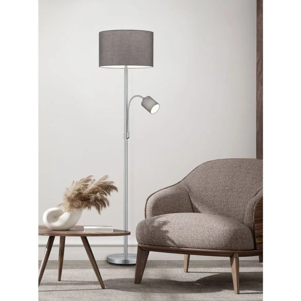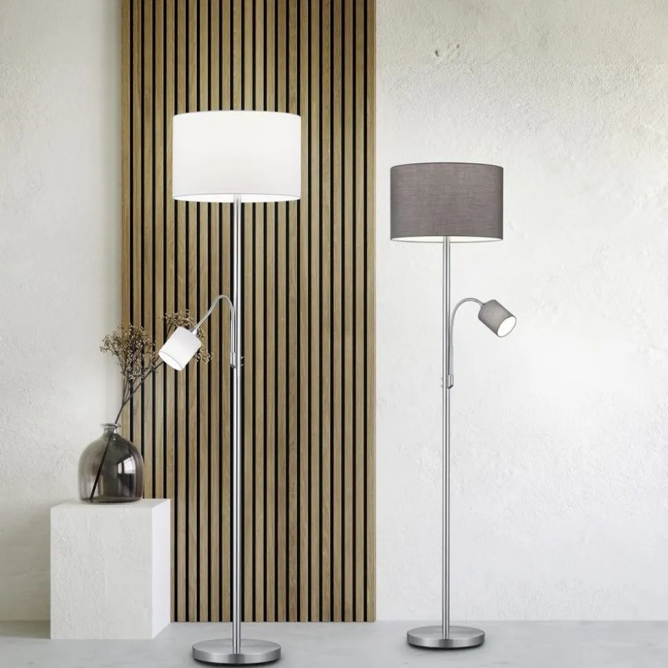 De HOTEL vloerlamp heeft een modern en eenvoudig ontwerp dat goed tot zijn recht komt in de slaapkamer, eetkamer of woonkamer. Deze lamp laat de meest onopvallende hoeken van je huis schitteren in nieuwe pracht. Idealiter wordt de lamp naast de bank geplaatst, want naast de hoofdlichtbron zorgt een flexibele leesarm voor het best mogelijke lichtresultaat. Deze kan gericht worden, zodat het gewenste lichtpatroon vrij kan worden gekozen. Lampenkappen van textiel zorgen ook voor een zacht en mild licht. De verlichting kan ook afzonderlijk worden geschakeld. De lamp in mat nikkel met een grijze stoffen kap onderstreept de moderne stijl en kan prachtig gecombineerd worden. Het gebruik van LED lichtbronnen wordt aanbevolen voor energiebesparende verlichting. Deze vormen een ideaal alternatief voor conventionele halogeenlichtbronnen en bieden een hoge lichtkwaliteit en energiebesparingen tot 80%. Met LED lichtbronnen profiteert u ook van een lange levensduur en een lage warmteontwikkeling, terwijl het milieu wordt beschermd.
