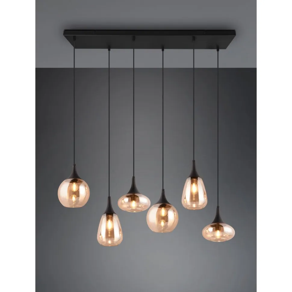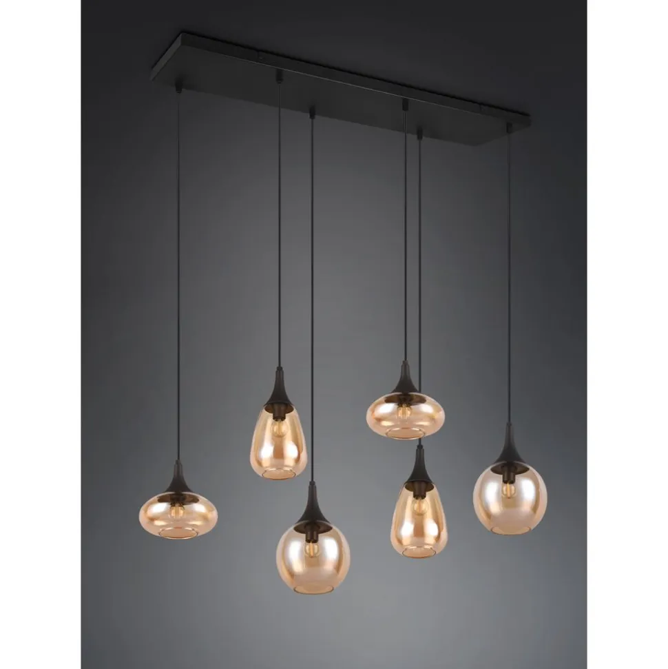 De LUMINA hanglamp is een bijzondere blikvanger in je woonruimte dankzij de elegante glazen kappen! De verschillende vormen van de drie kappen en de samenstelling van metaal en glas creƫren een prachtige en unieke lichtsfeer die je eethoek een moderne touch geeft. Dankzij het matzwarte kleurenschema en de amberkleurige glazen tinten is er veel ruimte voor andere kleuren, waardoor hij heel gemakkelijk te integreren is in bestaande woonconcepten. Het gebruik van LED lichtbronnen wordt aanbevolen voor energiebesparende verlichting. Deze vormen een ideaal alternatief voor conventionele halogeenlichtbronnen en bieden een hoge lichtkwaliteit en energiebesparingen tot 80%. Met LED lichtbronnen profiteert u ook van een lange levensduur en een lage warmteontwikkeling, terwijl het milieu wordt beschermd.