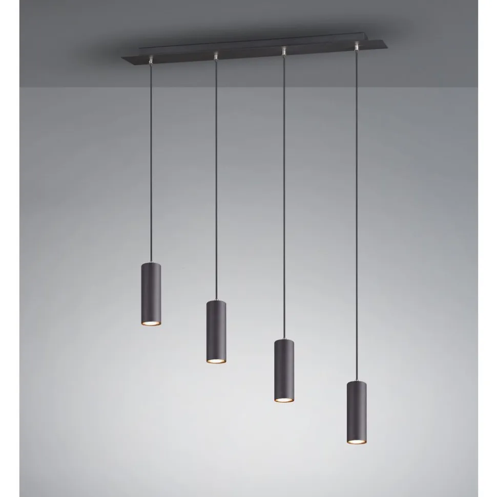 De MARLEY hanglamp is niet alleen praktisch in vorm en functie, maar vooral mooi! De lamp heeft een discreet design en overtuigt door haar hoogwaardige afwerking. In de keuken of in de woonkamer: de vierlichts MARLEY is veelzijdig en kan gemakkelijk worden gecombineerd met verschillende inrichtingsstijlen. De hanglamp heeft een breedte van 75 cm en is bijzonder effectief als ze in het midden van een eethoek boven een langwerpige eettafel wordt gemonteerd. Tijdens de installatie kunnen de ophanglengtes van de vier hangers individueel worden aangepast tot een lengte van 150 cm. De hanglamp is ontworpen in mat zwart en kan daardoor moderne kleurconcepten stijlvol aanvullen en completeren. Voor een energiebesparende verlichting is het gebruik van een ledlichtbron aanbevolen. Deze zijn een optimaal alternatief voor gewone halogeenlampen en staan voor een hoge lichtkwaliteit en een energiebesparing van tot 80%. Bovendien profiteert u bij ledlichtbronnen van een lange levensduur, een geringe warmteontwikkeling en spaart tegelijkertijd het milieu.