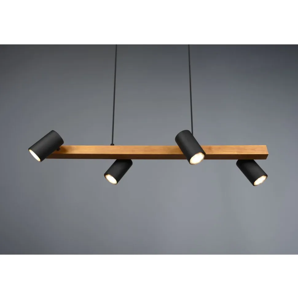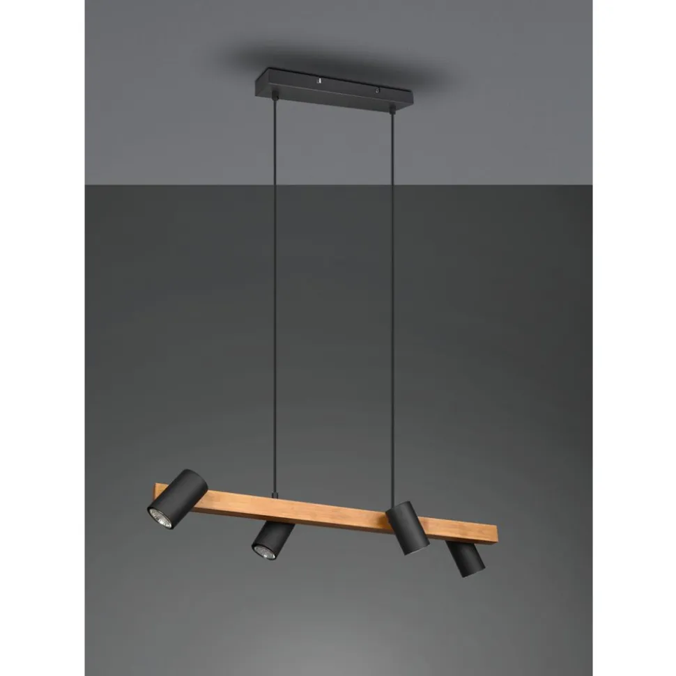 De hanglamp MARLEY is niet alleen praktisch in vorm en functie, maar vooral één ding: gewoonweg mooi! De lamp heeft een discreet design en overtuigt door haar hoogwaardige afwerking. In de keuken of in de woonzone: de viervlammige MARLEY kan veelzijdig gebruikt worden en laat zich goed combineren met verschillende inrichtingsstijlen. De slinger is ontworpen in de kleur mat zwart en hout en kan daardoor moderne kleurconcepten stijlvol aanvullen en vervolledigen. Voor een energiebesparende verlichting is het gebruik van een ledlichtbron aanbevolen. Deze zijn een optimaal alternatief voor gewone halogeenlampen en staan voor een hoge lichtkwaliteit en een energiebesparing van tot 80%. Bovendien profiteert u bij ledlichtbronnen van een lange levensduur, een geringe warmteontwikkeling en spaart tegelijkertijd het milieu.