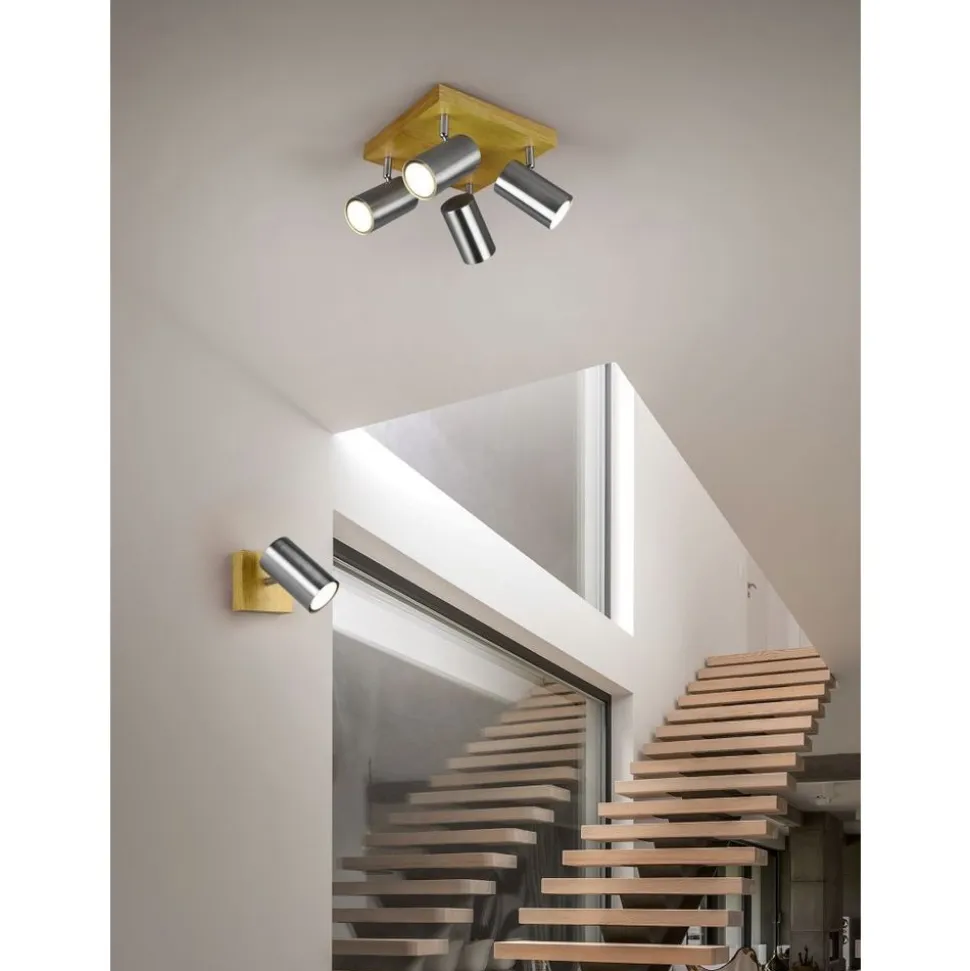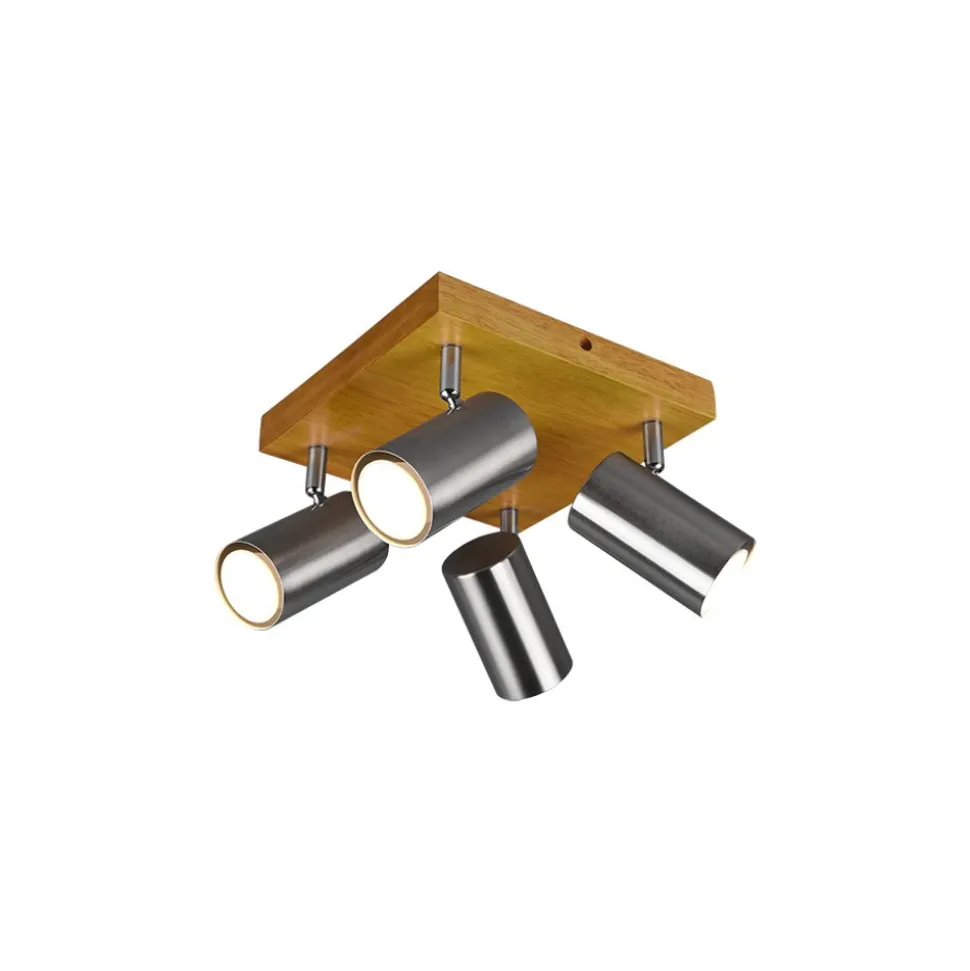 Perfect en variabel licht! De MARLEY-spots zijn niet alleen praktisch op het gebied van vorm en functie, maar vooral één ding: minimalistisch! De lamp heeft een subtiel design en overtuigt met haar hoogwaardige afwerking. De spots van de viervlammige plafondlamp zijn vrij beweegbaar en kunnen naar wens individueel gericht worden. In de keuken, hal of in de woonzone: de MARLEY kan veelzijdig gebruikt worden en kan mooi gecombineerd worden met verschillende interieurstijlen. De moderne combinatie uit hout en metaal in mat nikkel zorgt voor gezelligheid en is absoluut in de mode. Voor een energiebesparende verlichting is het gebruik van een ledlichtbron aanbevolen. Deze zijn een optimaal alternatief voor gewone halogeenlampen en staan voor een hoge lichtkwaliteit en een energiebesparing van tot 80%. Bovendien profiteert u bij ledlichtbronnen van een lange levensduur, een geringe warmteontwikkeling en spaart tegelijkertijd het milieu.