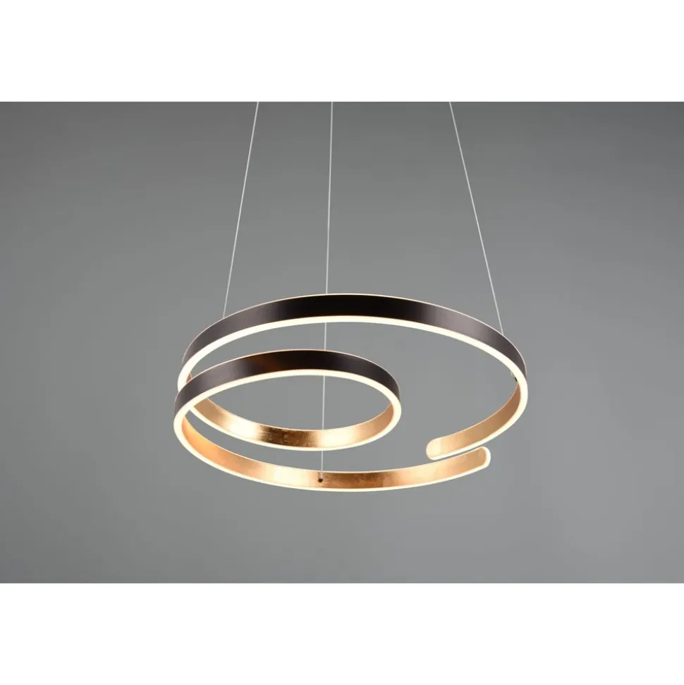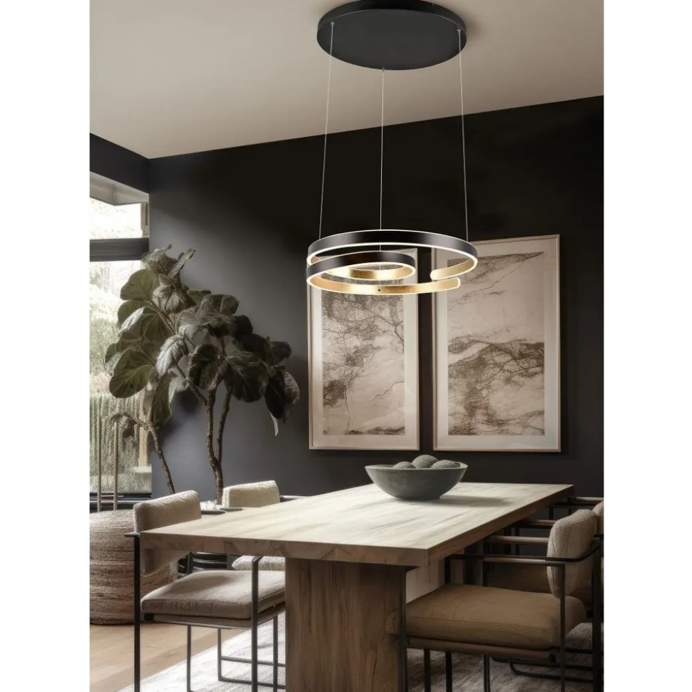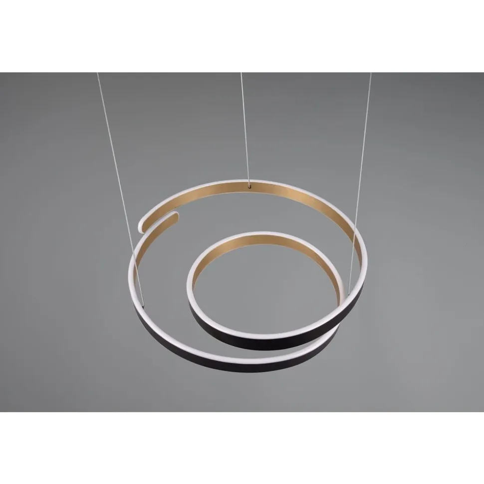 De MARNIE hanglamp speelt met haar gebogen vorm en maakt een sterk statement. De spiraalvormige armatuur is het meest effectief in de eetkamer boven een tafel. De indirecte verlichting verrijkt je leefruimte met een aangename lichtsfeer. Dankzij de SWITCH dimmer kan het licht trapsgewijs (100%, 50% en 25%) worden gedimd met een conventionele lichtschakelaar. Maak van je eethoek het middelpunt van de kamer! De speciale designtaal en de zwarte en gouden kleurstelling zetten moderne accenten in je interieur. De armatuur is ook voorzien van moderne LED-technologie, die wordt gekenmerkt door een hoge lichtkwaliteit en energie-efficiëntie. Vergeleken met conventionele halogeenlichtbronnen kan tot 80% op de energiekosten worden bespaard. Met LED lichtbronnen profiteert u ook van een lange levensduur en een lage warmteontwikkeling, terwijl het milieu wordt beschermd.