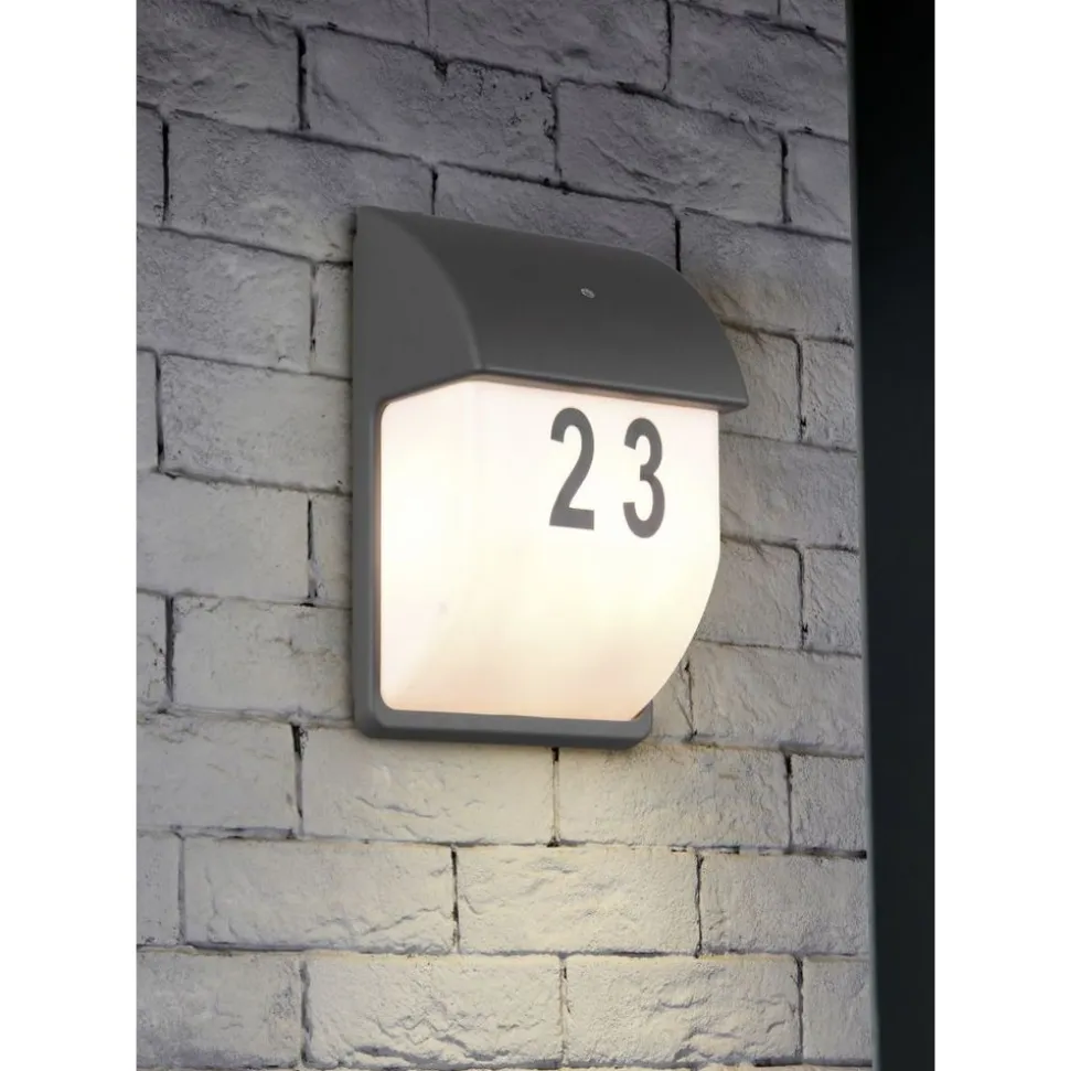 Zet bijzondere accenten in uw ingangszone met de moderne muurlamp MERSEY (inclusief huisnummerset) en zorg niet alleen voor veiligheid, maar ook voor momenten van welzijn rondom uw huis. Dankzij de ingebouwde schemersensor gaat het licht automatisch aan als het donker wordt, zodat het huisnummer dag en nacht zichtbaar is. Bovendien beschikt de MERSEY over de IP44-classificatie en is daardoor weerbestendig. De antracietkleurige buitenlamp van gegoten aluminium en witte kunststof heeft een moderne en eenvoudige vorm die zich gemakkelijk aanpast aan elke gevel. Voor een energiebesparende verlichting is het gebruik van een ledlichtbron aanbevolen. Deze zijn een optimaal alternatief voor gewone halogeenlampen en staan voor een hoge lichtkwaliteit en een energiebesparing van tot 80%. Bovendien profiteert u bij ledlichtbronnen van een lange levensduur, een geringe warmteontwikkeling en spaart tegelijkertijd het milieu.