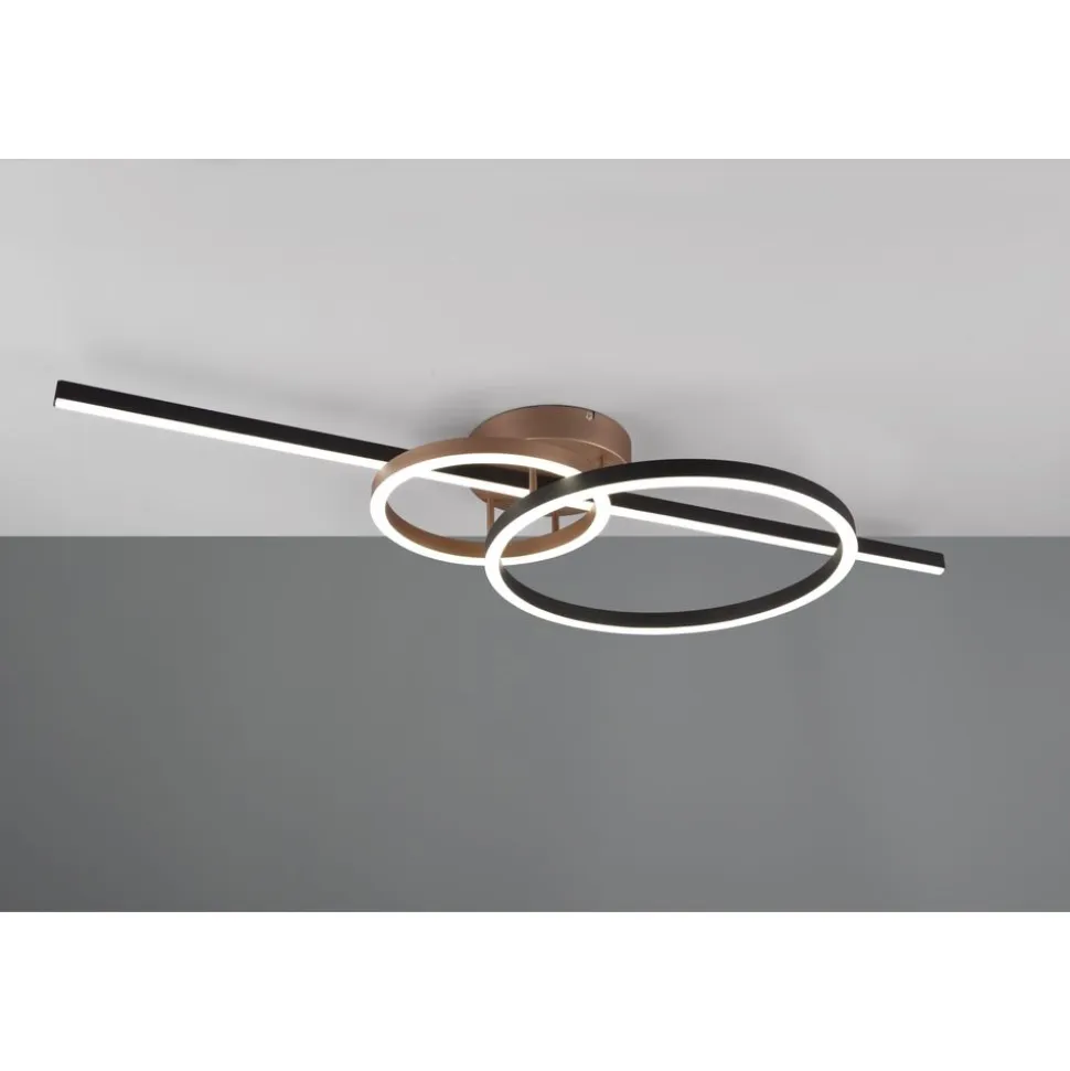 Met haar ongewone design is de MONTILLA wand- en plafondlamp zeker een gespreksonderwerp voor interieurliefhebbers en brengt ze elke dag vreugde. Het ontwerp met geometrische vormen wordt een onafhankelijk designelement in je woonruimte en voegt pure gratie toe aan elke kamer. Functies zoals het dimmen van de lichtsterkte en het aanpassen van de lichtkleur bieden individuele ontwerpopties voor de ruimte. De lamp wordt gecompleteerd door extra functies zoals de nachtlichtfunctie of geheugenfunctie. Alle instellingen kunnen gemakkelijk vanaf de bank worden bediend met de meegeleverde afstandsbediening. Laat het samenspel van materiaaleffect, vormenspel en lichtsfeer tot zijn recht komen in je huis. De kleurencombinatie in mat zwart en koffie trekt ieders aandacht, zowel bij het aan- als uitschakelen. De armatuur is ook voorzien van moderne LED-technologie, die wordt gekenmerkt door een hoge lichtkwaliteit en energie-efficiëntie. Vergeleken met conventionele halogeenlichtbronnen kan tot 80% op de energiekosten worden bespaard. Met LED lichtbronnen profiteert u ook van een lange levensduur en een lage warmteontwikkeling, terwijl het milieu wordt beschermd.
