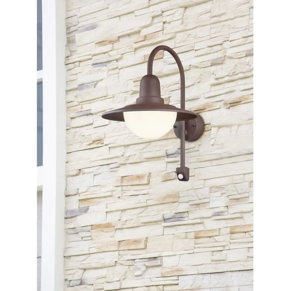 De klassiek geïnspireerde vorm van de buitenlamp NORMAN zorgt in uw buitenzone voor veel charme en wordt juist geplaatst een decoratieve blikvanger. Een speciale eigenschap van deze buitenlampen is de geïntegreerde bewegingssensor. Hij reageert op beweging in zijn dichte omgeving en schakelt de lamp automatisch aan en weer uit. Een garantie voor meer veiligheid en oriëntering in de duisternis! Dankzij de beschermingsklasse IP44 is de lamp bijzonder weerbestendig en dus ook optimaal geschikt voor de buitenzone. Voor een rustiek uitzicht zorgen de roestkleurige vormgeving en het klassieke design van de lamp. Voor een energiebesparende verlichting is het gebruik van een ledlichtbron aanbevolen. Deze zijn een optimaal alternatief voor gewone halogeenlampen en staan voor een hoge lichtkwaliteit en een energiebesparing van tot 80%. Bovendien profiteert u bij ledlichtbronnen van een lange levensduur, een geringe warmteontwikkeling en spaart tegelijkertijd het milieu.