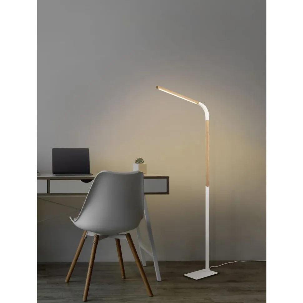 Ontspannen met een boek of tablet na het werk – dat vraagt om een harmonieuze lichtsfeer: Met de geïntegreerde SWITCH-dimmer biedt de NORRIS vloerlamp een oplossing die gemakkelijk is voor de ogen, omdat de helderheid naar wens kan worden aangepast in drie niveaus (100%, 50% en 25%). Dankzij de flexibele arm van de NORRIS kan het licht individueel worden gericht, waardoor de lamp de perfecte keuze is voor een avondpauze met een tablet of lievelingsboek. Plaats de vloerlamp naast of achter de bank en geniet van je gezellige leeshoekje! Het puristische silhouet van de lamp en de geslaagde combinatie van natuurlijk hout en mat wit metaal zijn in elk opzicht indrukwekkend. De armatuur is ook voorzien van moderne LED-technologie, die wordt gekenmerkt door een hoge lichtkwaliteit en energie-efficiëntie. Vergeleken met conventionele halogeenlichtbronnen kan tot 80% op de energiekosten worden bespaard. LED lichtbronnen hebben ook een lange levensduur, produceren minder warmte en beschermen het milieu.
