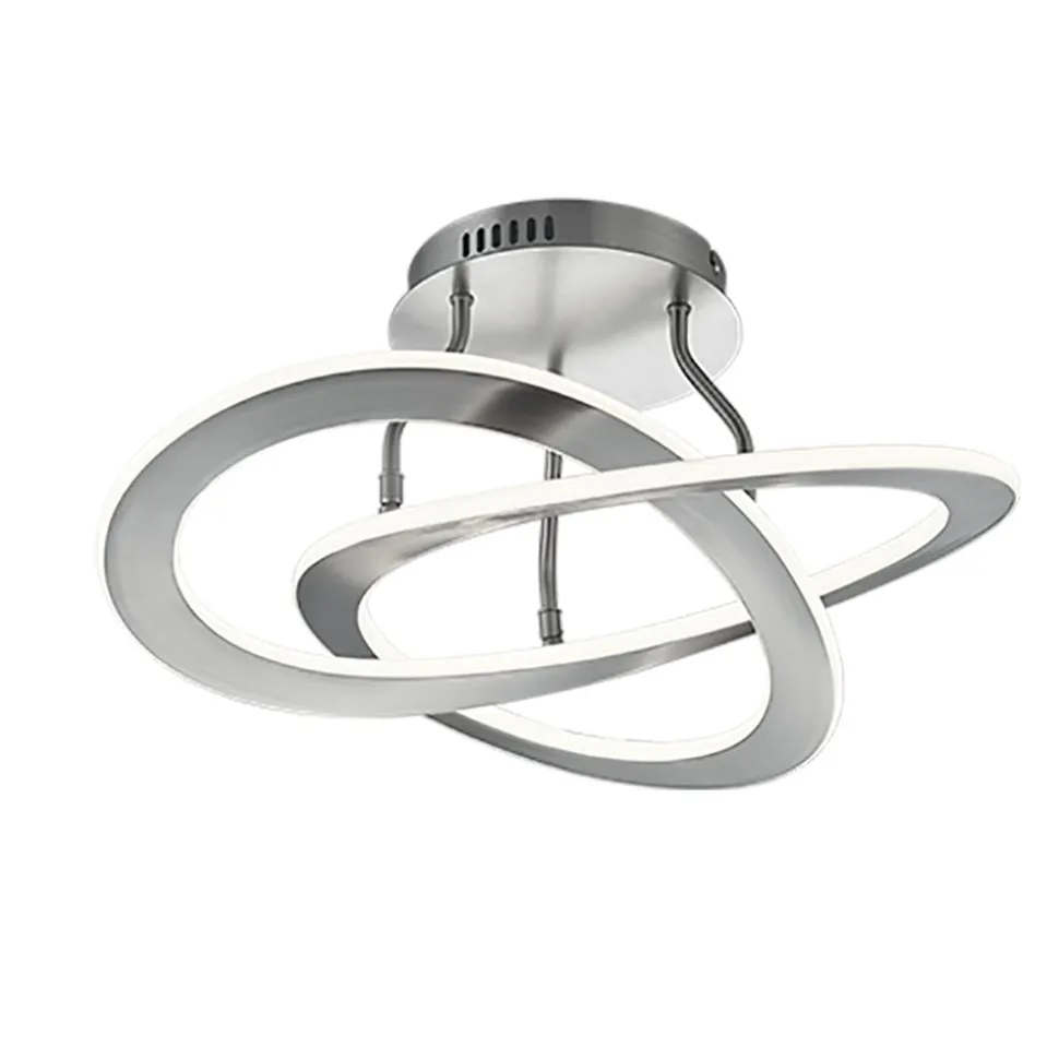 Met een modern en ongebruikelijk ontwerp creëert de plafondlamp OAKLAND een effectieve blikvanger in je woonruimte en biedt ze talloze toepassings- en ontwerpmogelijkheden. De lamp maakt ook indruk met zijn praktische extra functies. Met de geïntegreerde SWITCH dimmer kun je kiezen tussen drie verschillende helderheidsniveaus met behulp van een conventionele lichtschakelaar. Door de lichtintensiteit te variëren van 100% tot 50% en 25% kan de armatuur worden gebruikt om verschillende lichtsferen te creëren. De plafondlamp heeft een hoogte van 23,5 cm en een diameter van 53 cm. De afwerking in mat nikkel geeft de plafondlamp een modern design dat in tal van inrichtingsstijlen past. Daarnaast beschikt de lamp over een moderne ledtechnologie die zich onderscheidt met een hoge lichtkwaliteit en energie-efficiëntie. In vergelijking met gewone halogeenlampen kan tot 80% bespaard worden op de energiekosten. Bovendien hebben ledlampen een lange levensduur, produceren minder warmte en zijn milieuvriendelijk.