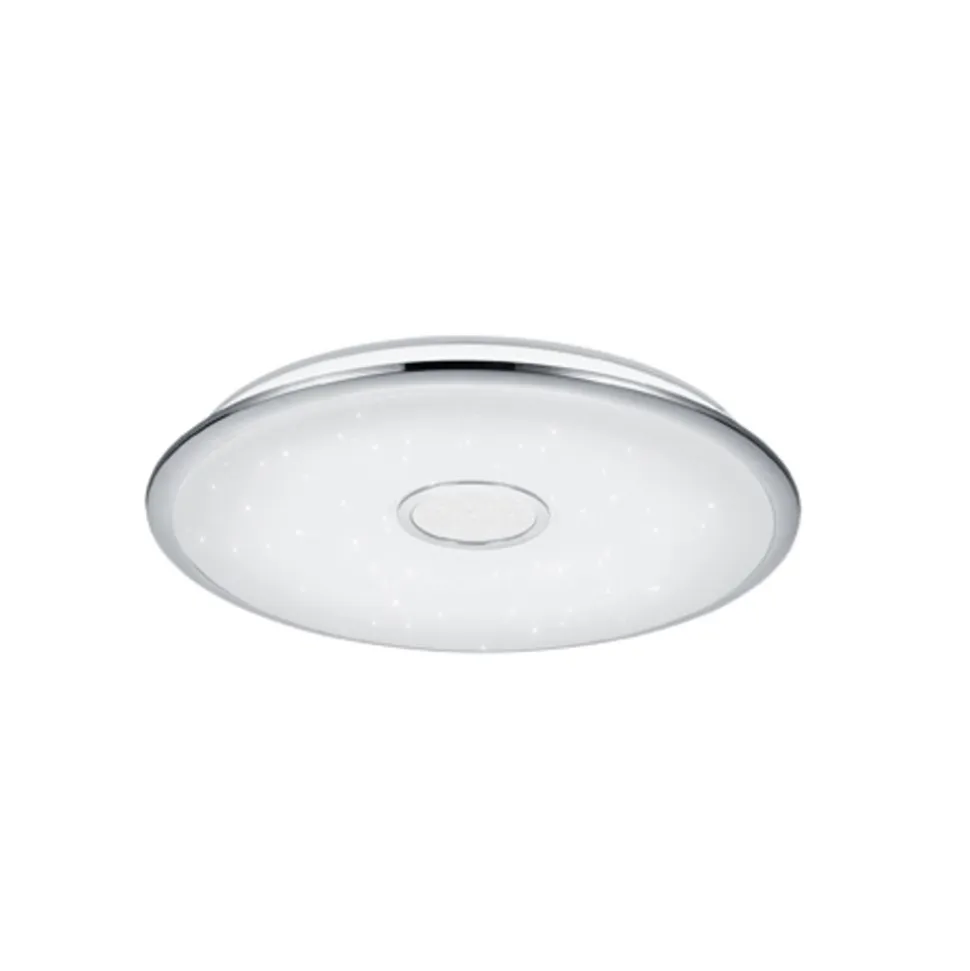 Ultramodern en elegant tegelijk – zo overtuigt de LED plafondlamp OSAKA. De armatuur met sterrenhemel heeft een ronde look en is opgebouwd uit chroomkleurige en heldere elementen, zodat ze gemakkelijk kan worden geïntegreerd in een moderne inrichtingsstijl. De OSAKA kan worden gedimd met een afstandsbediening en de lichtkleur kan traploos worden ingesteld van 3000 – 6000 Kelvin om de juiste lichtsfeer in de kamer te creëren. Het armatuur heeft ook een nachtlichtfunctie, die desgewenst ook via de afstandsbediening kan worden bediend, en een geheugenfunctie zodat favoriete instellingen kunnen worden opgeslagen. De lamp heeft een diameter van 60 cm en is daarom ook ideaal voor het verlichten van grote ruimtes. De lamp is gemaakt van chroomkleurig kunststof en een witte afdekking en kan daarom worden geïntegreerd in elke inrichtingsstijl. Daarnaast beschikt de lamp over een moderne ledtechnologie die zich onderscheidt met een hoge lichtkwaliteit en energie-efficiëntie. In vergelijking met gewone halogeenlampen kan tot 80% bespaard worden op de energiekosten. Bovendien hebben ledlampen een lange levensduur, produceren minder warmte en zijn milieuvriendelijk.