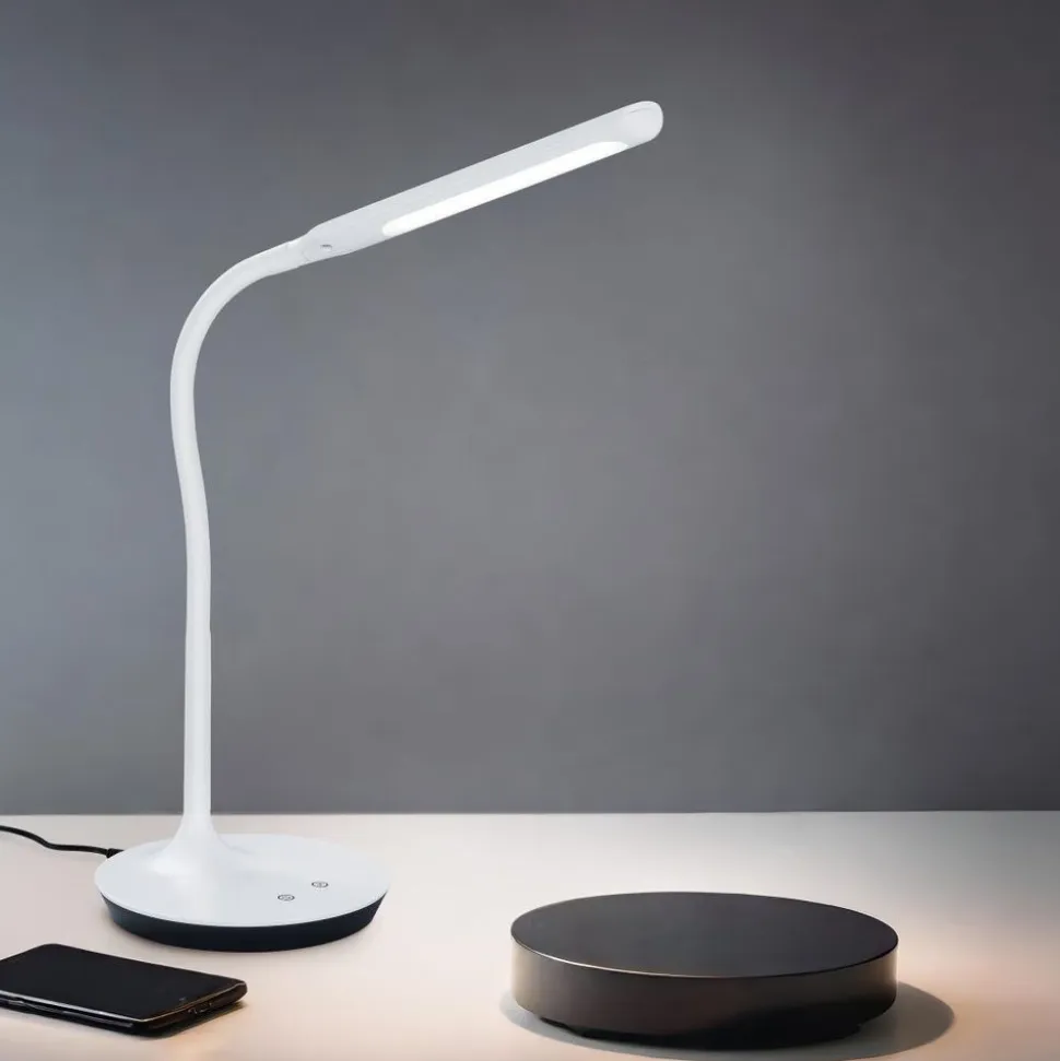 De tafellamp POLO biedt een hoge flexibiliteit in combinatie met een modern en ongecompliceerd ontwerp. De armatuurhals biedt optimale verstelmogelijkheden zodat de lamp individueel kan worden gepositioneerd. Er zijn twee aanraakpunten op de voet van de lamp waarmee de lamp gemakkelijk kan worden in- en uitgeschakeld, 4 keer kan worden gedimd en de lichtkleur trapsgewijs kan worden aangepast (3000/4000/5000 Kelvin). Met een hoogte van 41 cm en een projectie van 40 cm is de tafellamp daarom ideaal als moderne en functionele bureauverlichting. Het tijdloze matte wit is opzettelijk eenvoudig gehouden en past gemakkelijk in bestaande kleurenschema’s. Daarnaast beschikt de lamp over een moderne ledtechnologie die zich onderscheidt met een hoge lichtkwaliteit en energie-efficiëntie. In vergelijking met gewone halogeenlampen kan tot 80% bespaard worden op de energiekosten. Bovendien hebben ledlampen een lange levensduur, produceren minder warmte en zijn milieuvriendelijk.