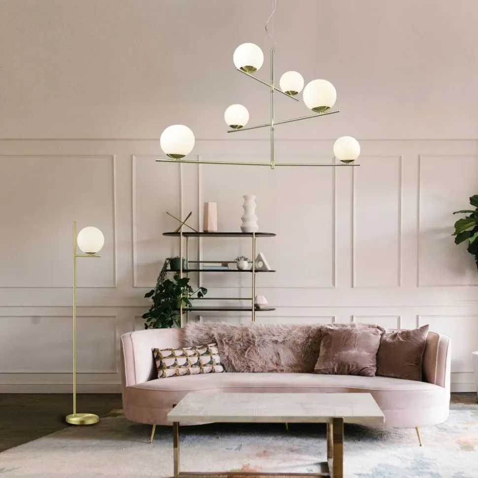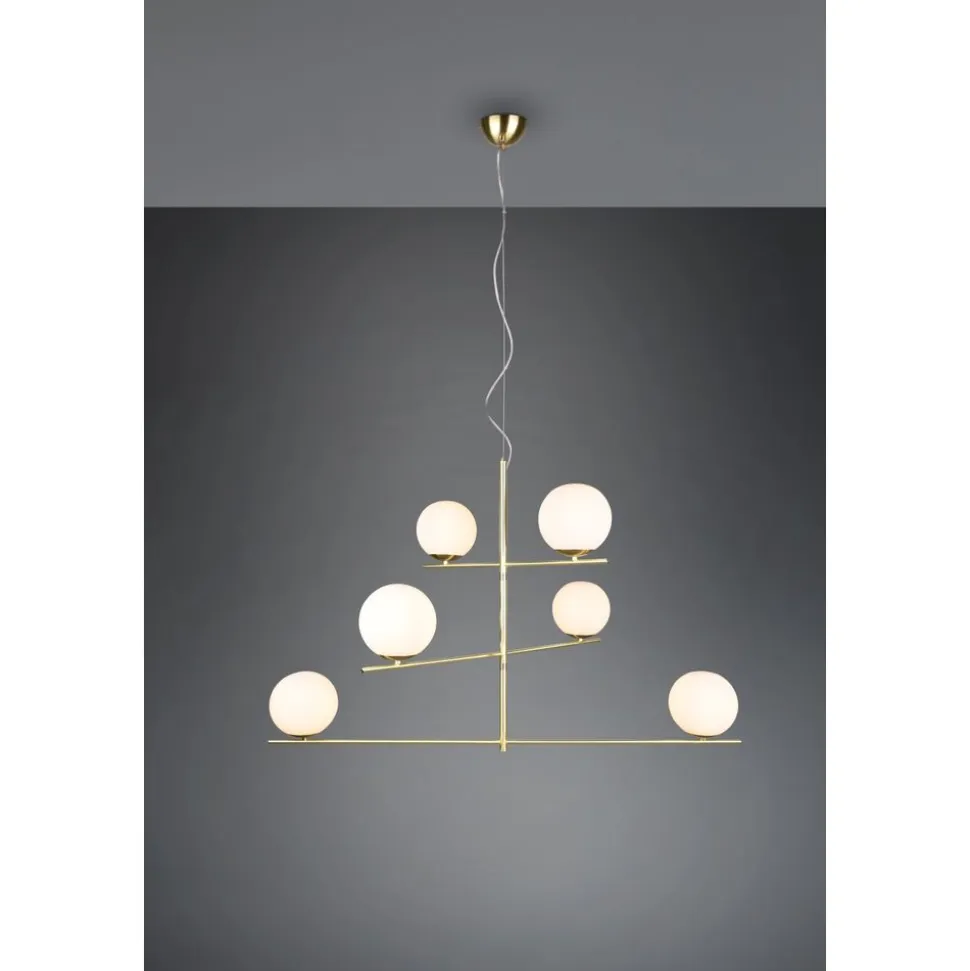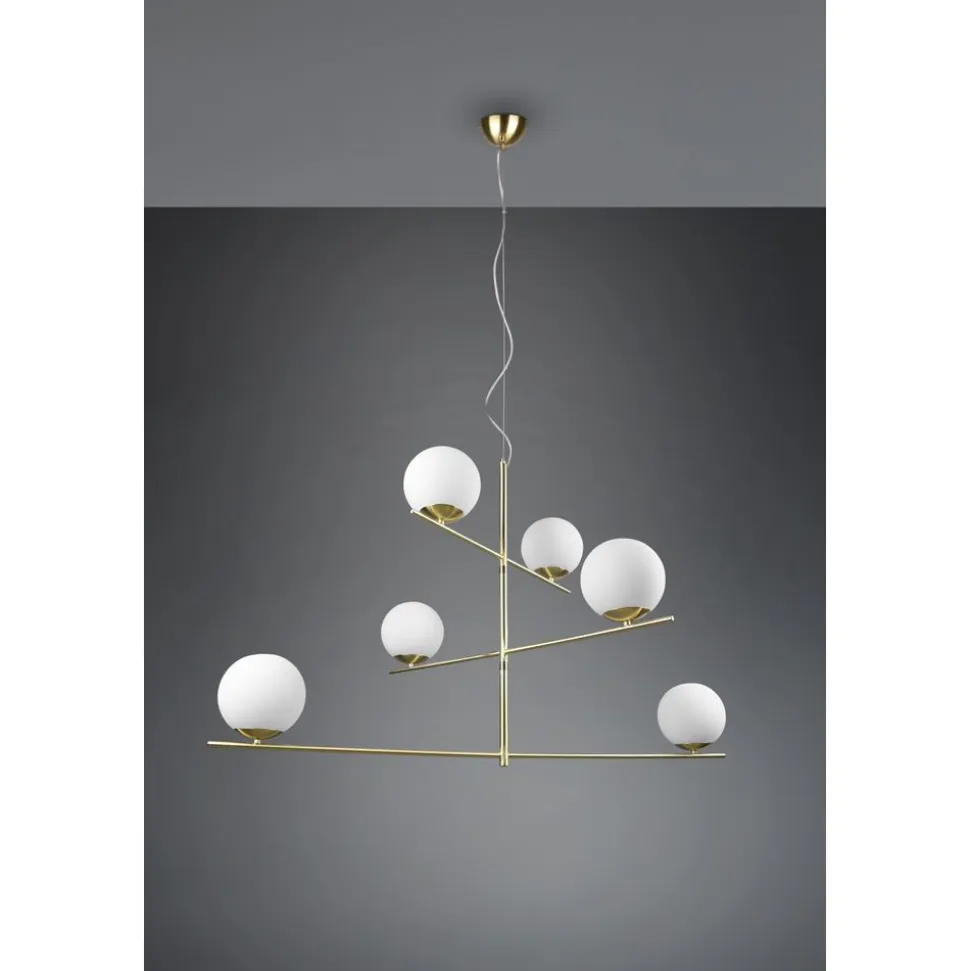 Eenvoudig en absoluut stijlvol! Of het nu gaat om een strakke, rechtlijnige inrichtingsstijl of toch een iets speelsere, de lampen van de serie PURE zorgen voor eenvoudige decoratieve accenten om elke look een vleugje elegantie te verlenen. De eenvoudige stijl is absoluut eigentijds en kan worden gecombineerd met zowel opvallende als subtiele elementen. De zwenkbare elementen van de zesvlammige hanglamp kunnen individueel worden gericht. De lamp is dan ook perfect voor het verlichten van de eettafel en het benadrukken van uw eigen woonstijl. Het puristisch-minimalistische design van de PURE is een mix van verfijnde metaallook in mat messing gecombineerd met wit glas. Voor een energiebesparende verlichting is het gebruik van een ledlichtbron aanbevolen. Deze zijn een optimaal alternatief voor gewone halogeenlampen en staan voor een hoge lichtkwaliteit en een energiebesparing van tot 80%. Bovendien profiteert u bij ledlichtbronnen van een lange levensduur, een geringe warmteontwikkeling en spaart tegelijkertijd het milieu.Â