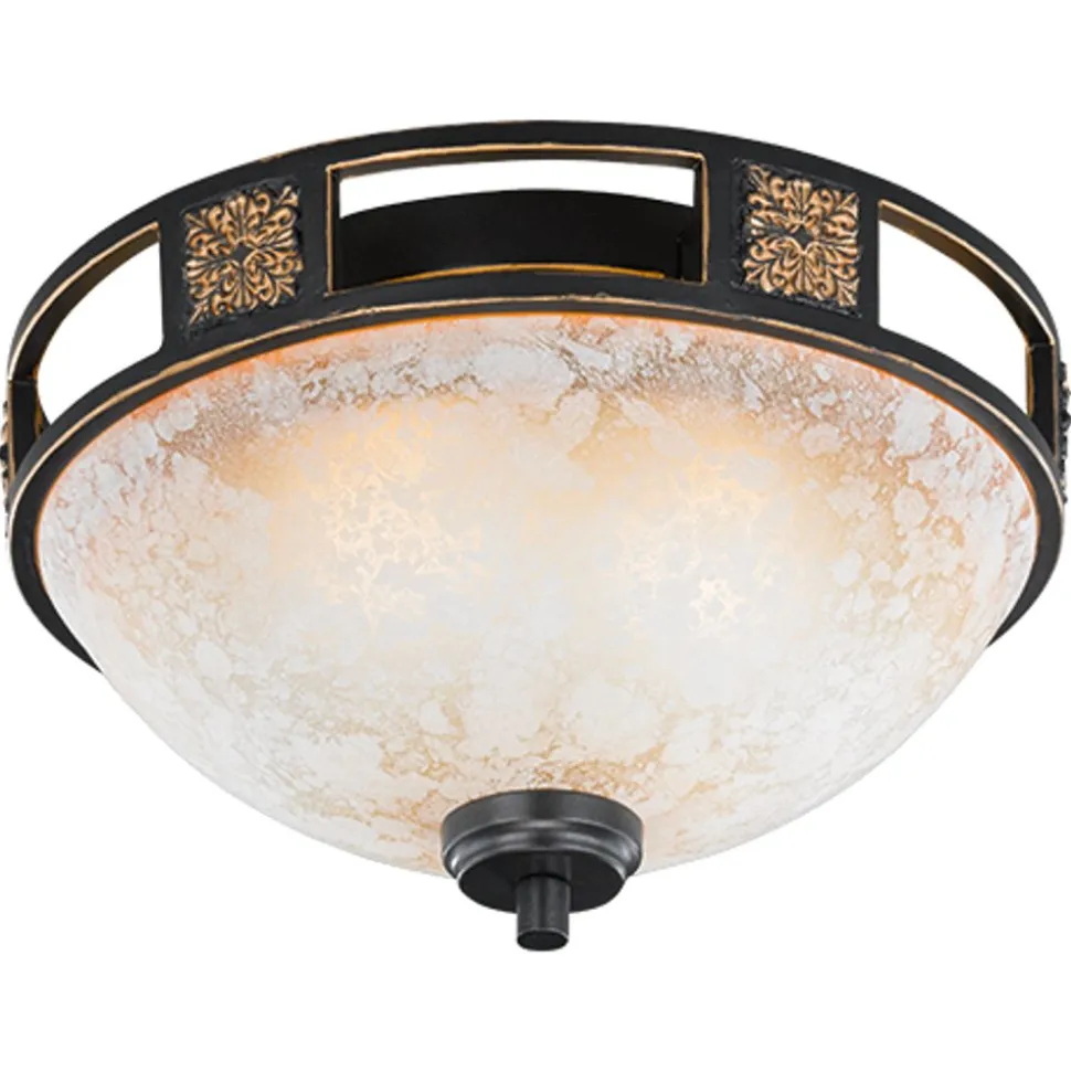 Rustiek design gecombineerd met antiek geïnspireerde materialen creëren de QUINTA plafondlamp in typische landhuisstijl. Het klassieke uiterlijk van deze plafondlamp benadrukt zowel rustieke als mediterrane inrichtingsstijlen. Met haar zachte, niet-verblindende licht geeft ze kamers een gezellige sfeer. De diameter is 33 cm. Het frame met roestkleurig oppervlak wordt aantrekkelijk geaccentueerd door goudkleurige ornamenten. Het champagnekleurige, licht gestructureerde glas zorgt voor een bijzonder warme gloed. Voor een energiebesparende verlichting is het gebruik van een ledlichtbron aanbevolen. Deze zijn een optimaal alternatief voor gewone halogeenlampen en staan voor een hoge lichtkwaliteit en een energiebesparing van tot 80%. Bovendien profiteert u bij ledlichtbronnen van een lange levensduur, een geringe warmteontwikkeling en spaart tegelijkertijd het milieu.