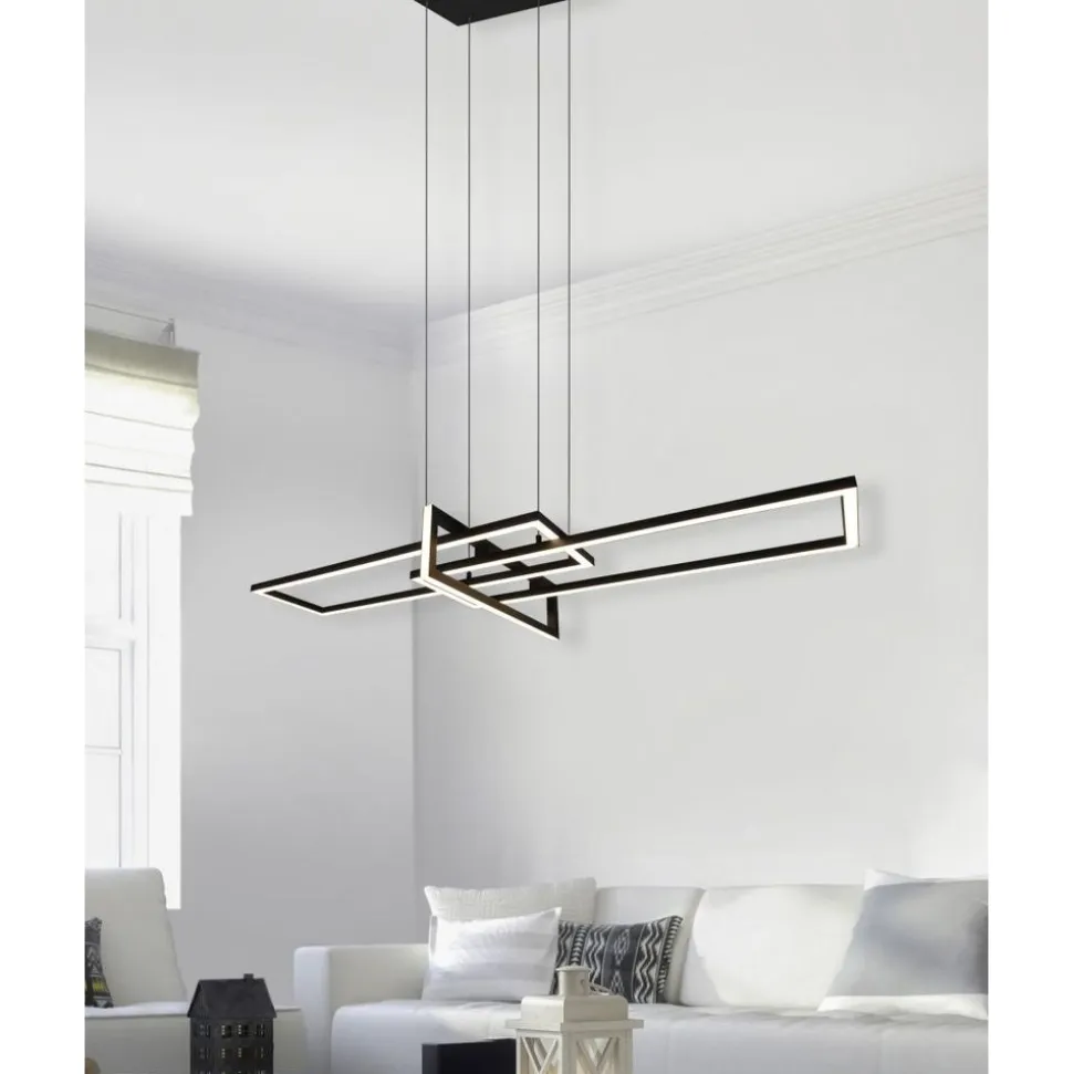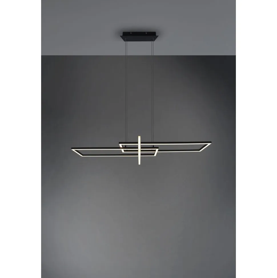 De pendellamp SALINAS verrijkt uw interieurconcept met een elegant en indrukwekkend design. Boven de eettafel geplaatst onderstreept de lamp de moderne woonstijl en zorgt met drie verschillend gerichte lichtelementen voor een aangename verlichting. Daarnaast beschikt de lamp over een SWITCH-dimmer waardoor de helderheid in niveaus afgestemd kan worden van 100% naar 50% en 25% door middel van een gewone lichtschakelaar. Door het moderne kleurschema in mat zwart kunnen stijlvolle contrasten gezet worden. Daarnaast beschikt de lamp over een moderne ledtechnologie die zich onderscheidt met een hoge lichtkwaliteit en energie-efficiëntie. In vergelijking met gewone halogeenlampen kan tot 80% bespaard worden op de energiekosten. Bovendien hebben ledlampen een lange levensduur, produceren minder warmte en zijn milieuvriendelijk.