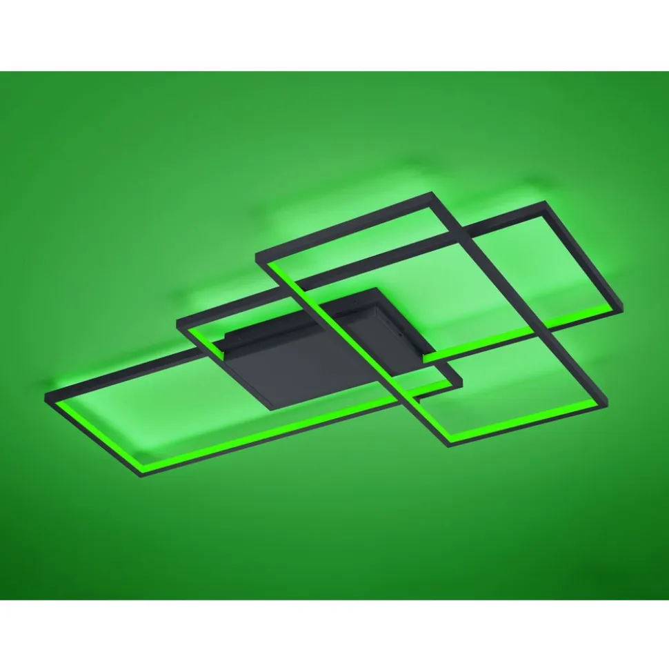 Get your light connected! De plafondlamp THIAGO levert een innovatief, flexibel en slim lichtdesign. WiZ-lampen bieden een ongelooflijk kleurenspectrum van 16 miljoen kleuren en 64.000 wittinten. Laat u wekken door zacht zonnelicht, begin boordevol energie aan de dag, ontspan u met rustgevend licht of maak van de nacht dag en dat alles helemaal eenvoudig via app. In tegenstelling tot andere Smart Home-providers is bij WiZ-lampen geen extra gateway nodig, zodat alle lampen volledig flexibel via een mobiel eindapparaat bediend kunnen worden. Bovendien kunnen de lampen gecombineerd worden met Alexa of Google Home, zodat de bediening via spraakassistent mogelijk is. Maar ook met de meegeleverde afstandsbediening of via de lichtschakelaar kunnen verschillende lichtprogramma’s en instellingen geselecteerd worden. Nog een voordeel is de flexibiliteit bij het gebruik: Zo kunnen de WiZ-lampen door meerdere gebruikers bediend, aan verschillende ruimtes of locaties toegekend en van overal bestuurd worden. De combinatie uit drie filigrane rechthoeken leidt tot een moderne lamp voor de woonzone of hal. De plafondlamp is in antraciet en laat zich probleemloos integreren in voor handen zijnde kleurconcepten. Daarnaast beschikt de lamp over een moderne ledtechnologie die zich onderscheidt met een hoge lichtkwaliteit en energie-efficiëntie. In vergelijking met gewone halogeenlampen kan tot 80% bespaard worden op de energiekosten. Bovendien hebben ledlampen een lange levensduur, produceren minder warmte en zijn milieuvriendelijk.