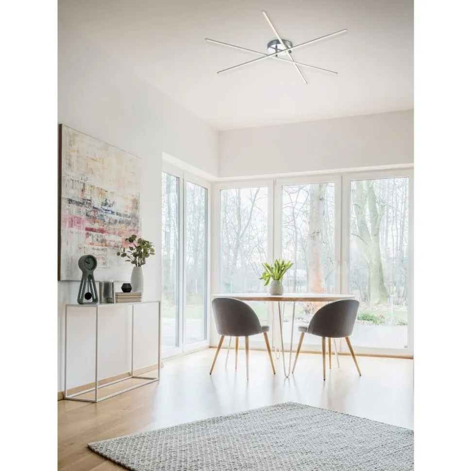 De trend naar rechte lijnen en heldere vormen is ongebroken. Met haar moderne en minimalistische design creĆ«ert de TIRIAC plafondlamp een stijlvolle blikvanger in je woonruimte – of het nu in de gang of woonkamer is. De plafondlamp heeft drie draaibare lichtelementen en is ook uitgerust met een SWITCH-dimmer zodat de helderheid in drie fasen kan worden gedimd met de conventionele lichtschakelaar. Afhankelijk van de oriĆ«ntatie van de elementen bereikt de plafondlamp een maximale grootte van 100 x 76 cm en een hoogte van 12 cm. De matte nikkelkleur ondersteunt het eenvoudige ontwerp en kan gemakkelijk worden geĆÆntegreerd in verschillende inrichtingsstijlen. Daarnaast beschikt de lamp over een moderne ledtechnologie die zich onderscheidt met een hoge lichtkwaliteit en energie-efficiĆ«ntie. In vergelijking met gewone halogeenlampen kan tot 80% bespaard worden op de energiekosten. Bovendien hebben ledlampen een lange levensduur, produceren minder warmte en zijn milieuvriendelijk.
