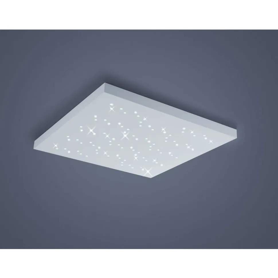 De TITUS plafondlamp maakt indruk met een speciaal soort lichtmagie. Het ontwerp en de constructie van het armatuur wekken de associatie op met een sterrenhemel en toveren sfeervolle, zachte lichteffecten in uw woonruimte. Met 98 lichtpunten kunt u decoratieve accenten plaatsen en tegelijkertijd een lichtinstallatie realiseren die ieders aandacht zal trekken. Bovendien kan zowel de lichtkleur tussen 3000 en 6000 Kelvin als de lichtintensiteit met de afstandsbediening traploos worden aangepast aan jouw wensen. Met een afmeting van 75 x 75 cm kun je je woonruimtes laten sprankelen. Dankzij de mat witte kleur kan de lamp naadloos worden geïntegreerd in je interieur. Daarnaast beschikt de lamp over een moderne ledtechnologie die zich onderscheidt met een hoge lichtkwaliteit en energie-efficiëntie. In vergelijking met gewone halogeenlampen kan tot 80% bespaard worden op de energiekosten. Bovendien hebben ledlampen een lange levensduur, produceren minder warmte en zijn milieuvriendelijk.