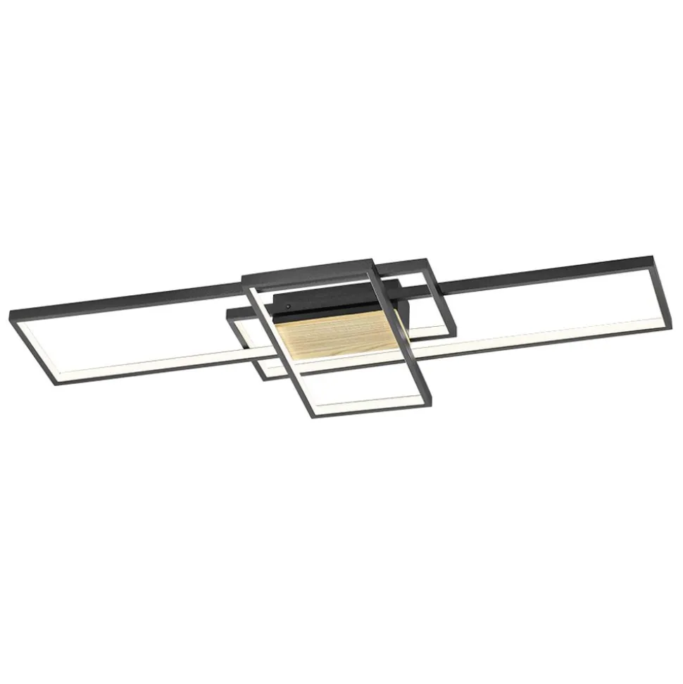 Verlichtingsontwerp voor minimalisten. De plafondlamp TUCSON verrijkt onze huizen met elegante eenvoud die op verschillende manieren kan worden gebruikt en optimale lichtomstandigheden creëert. De samenstelling van drie afzonderlijke, filigrane rechthoeken creëert een modern armatuur voor de woonkamer of entree. Met de geïntegreerde SWITCH-dimmer kun je de lichtsterkte in drie stappen aanpassen met een conventionele lichtschakelaar en aanpassen aan je behoeften. Met de geweldige combinatie van houtlook en matzwart past de lamp perfect in moderne inrichtingsconcepten. Daarnaast beschikt de lamp over een moderne ledtechnologie die zich onderscheidt met een hoge lichtkwaliteit en energie-efficiëntie. In vergelijking met gewone halogeenlampen kan tot 80% bespaard worden op de energiekosten. Bovendien hebben ledlampen een lange levensduur, produceren minder warmte en zijn milieuvriendelijk.