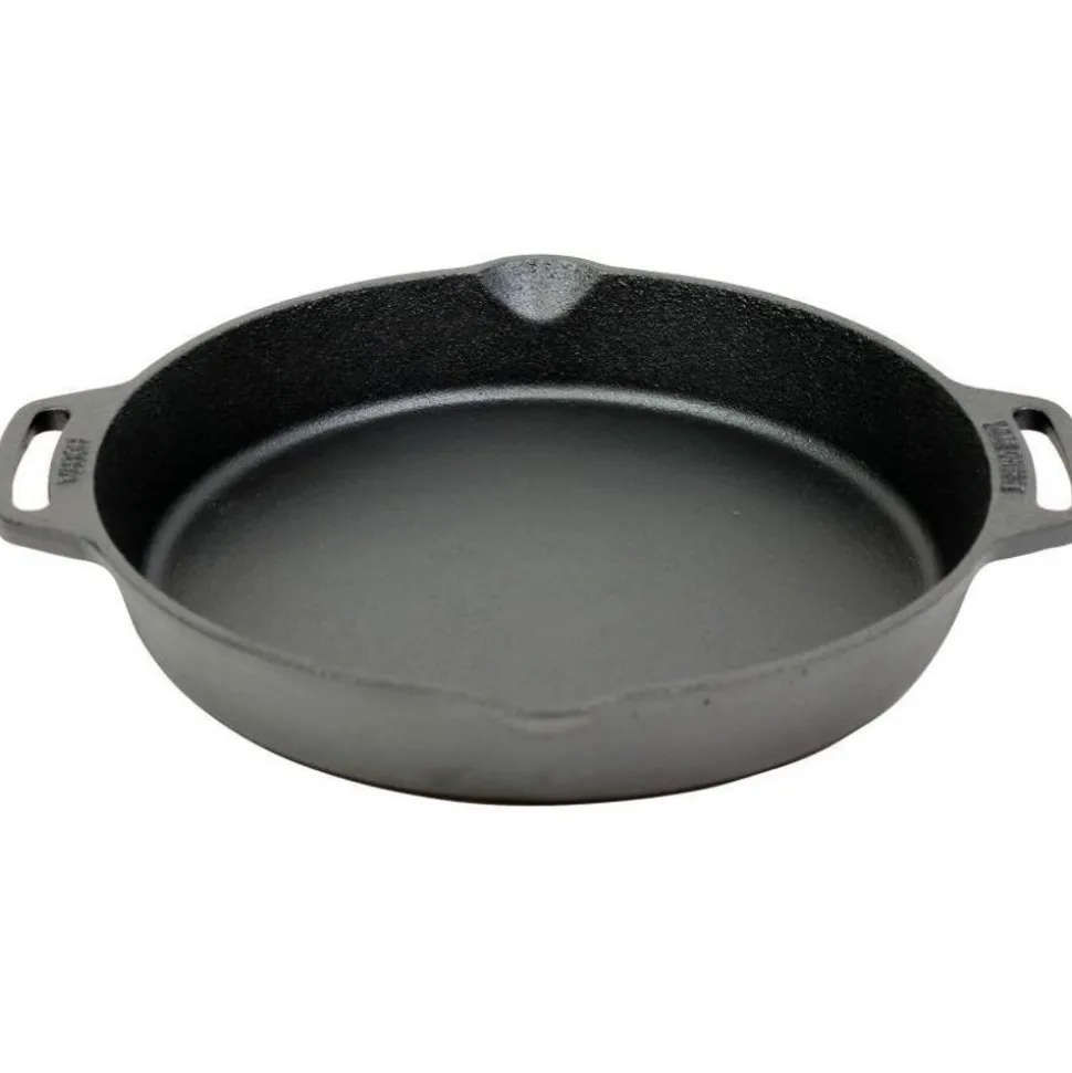 De VH30H skillet van Valhal Outdoor heeft een diameter van 30cm én heeft twee handvatten. De skillet heeft ook aan beide zijdes schenktuiten om bijvoorbeeld sauzen makkelijk uit te kunnen schenken. Doordat de skillet in zijn geheel van gietijzer gemaakt is, is deze geschikt voor alle warmtebronnen. Je kan er dus mee koken op je fornuis binnen, maar net zo goed op een kampvuur in je tuin of in de natuur. Deze skillet is geliefd onder bbq-ers met een keramische bbq of Weber.