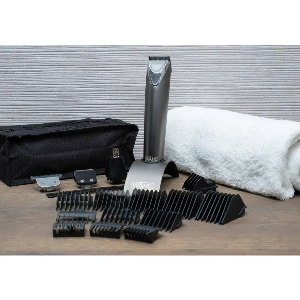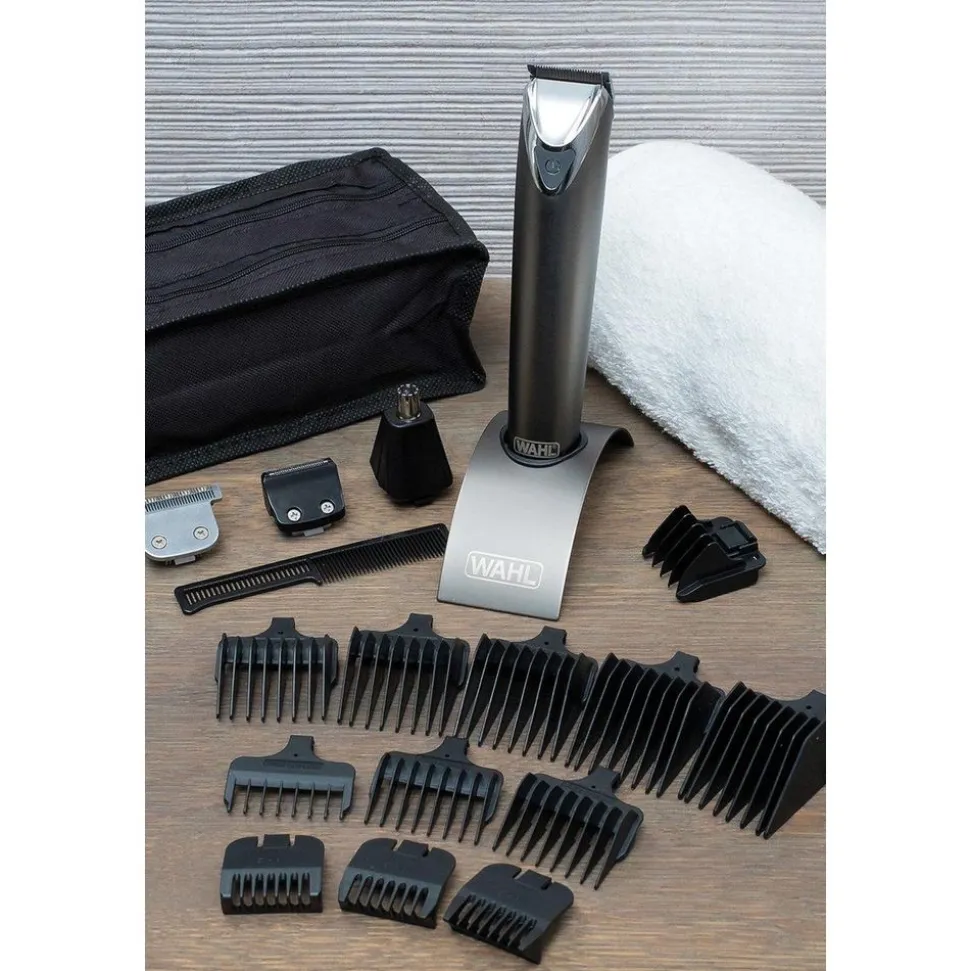 De Stainless Steel Advanced Multi Groomer is het paradepaardje uit het trimmerassortiment van Wahl: een snoerloze lithium-ion trimmer voor het hele lichaam.