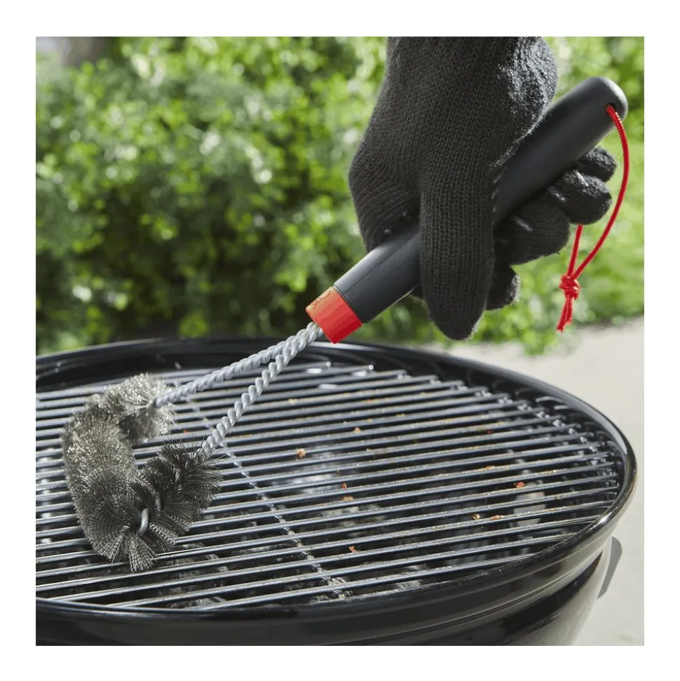 Deze driezijdige reinigingsborstel is ontworpen om vet en vuil van grillroosters van alle maten te verwijderen. Het handvat biedt een goede grip wanneer je aangekookte etensresten verwijdert van al die plaatsen in je barbecue die lastig te bereiken zijn. Gebruik deze reinigingsborstel om je grillroosters vóór elk gebruik schoon te maken zodat je barbecue langer meegaat en je volgende maaltijd net zo heerlijk is als de vorige.