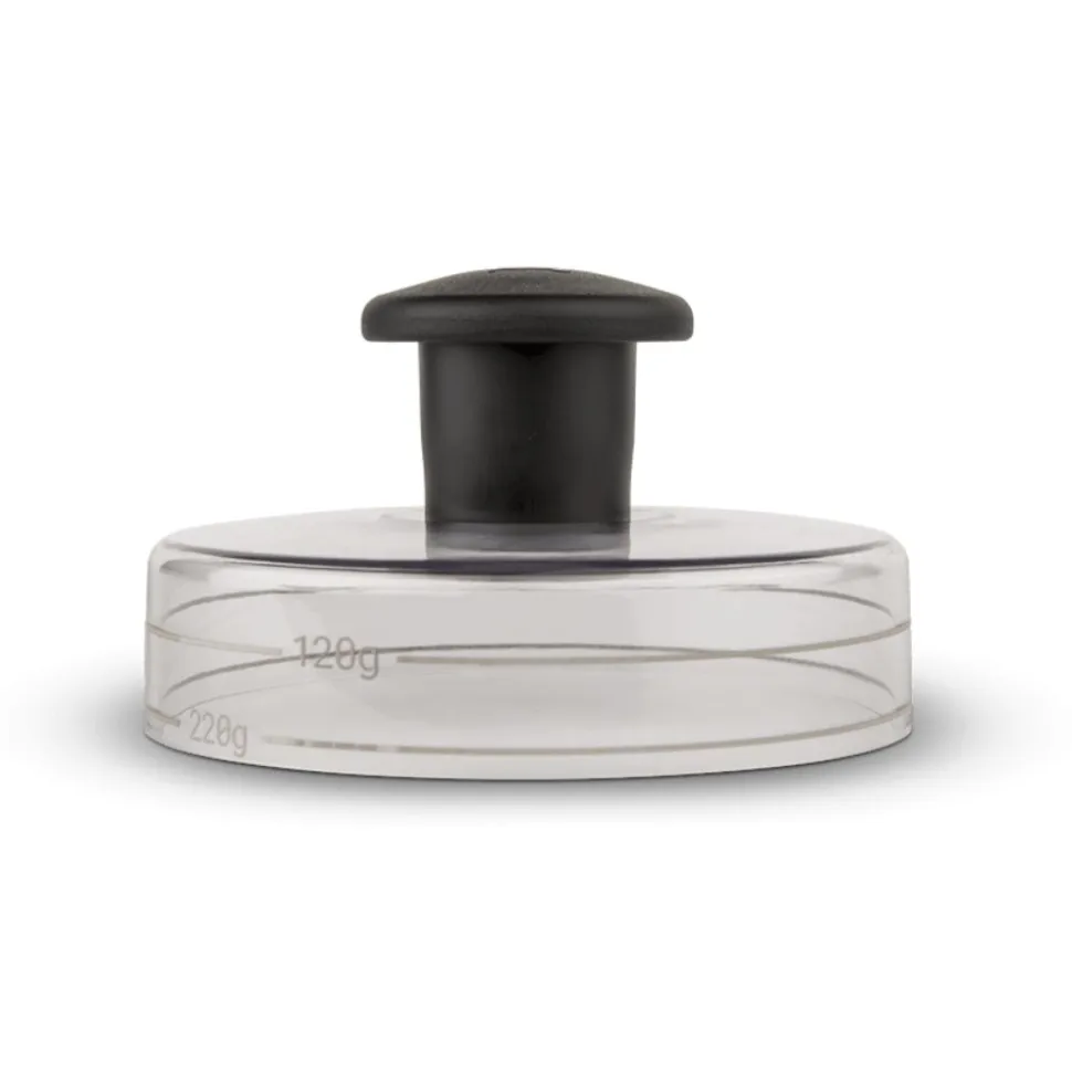 • Ontworpen om een kuiltje te maken in hamburgers, waardoor ze mooi plat worden en er altijd hetzelfde uitzien