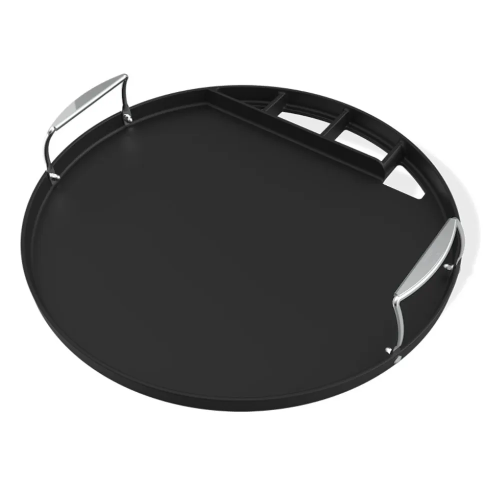Verander je Weber-houtskoolbarbecue van 57 cm in een bakplaat met deze met porselein geƫmailleerde gietijzeren bakplaatinzet en geniet van knapperige bacon, gebakken zeevruchten, smashed burgers, fajitas en meer. Het ronde ontwerp met verhoogde rand bedekt het hele oppervlak en heeft twee roestvrijstalen handgrepen die het eenvoudig maken om de plaat in de barbecue te plaatsen en eruit te halen. Snel schoon te maken met de vetafvoergleuf aan de achterkant en de lekbak met grote capaciteit (apart verkrijgbaar).