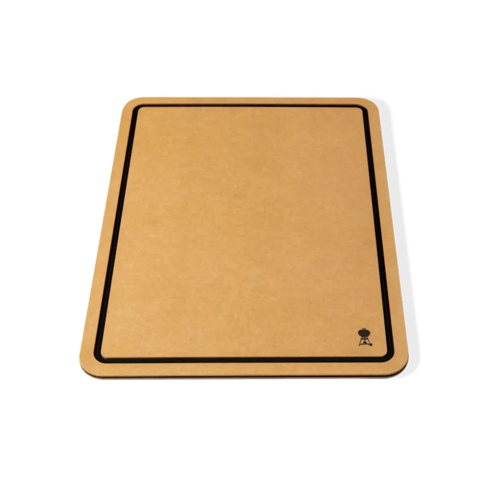 Creëer extra werkruimte op de zijtafel van je barbecue of bakplaat met de Weber Works-snijplank. Laat hem gewoon in de Weber Works-zijtafel vallen voor eenvoudig hakken en snijden vlakbij bij de barbecue of bakplaat. Draai hem om, leg het gegaarde eten aan de andere kant en serveer het gerecht.
