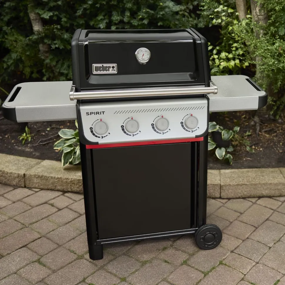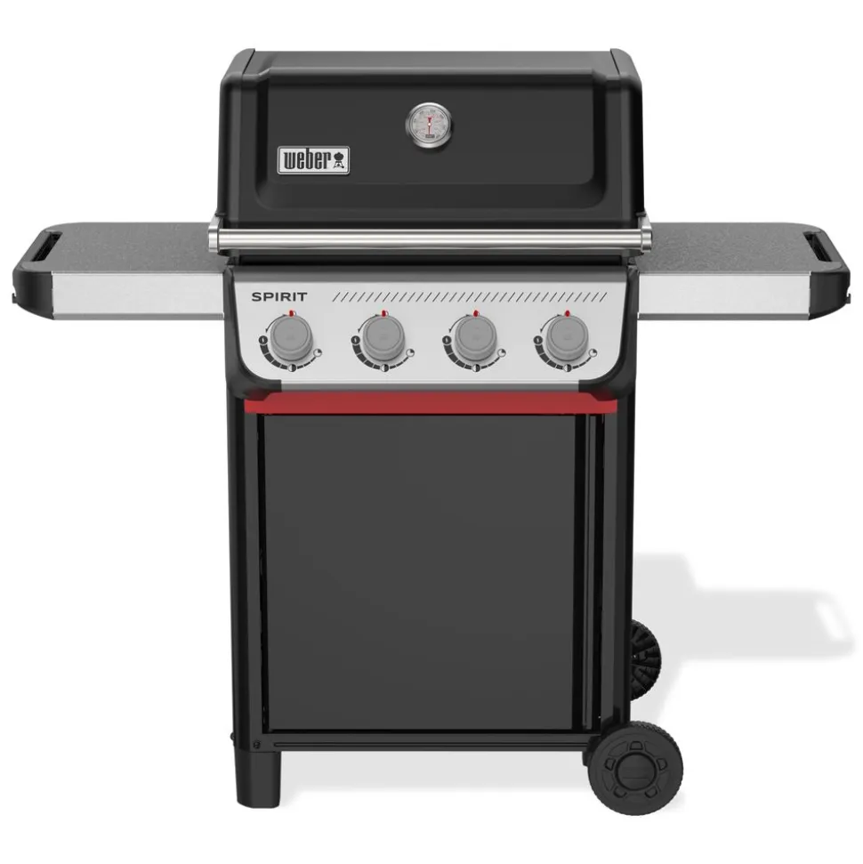 Gril gerechten die lekkerder smaken dan ooit op de nieuwe Spirit® E-410-gasbarbecue met 4 branders. Steek elke afzonderlijke brander eenvoudig en met één hand aan met Snap-Jetontsteking en regel de warmte nauwkeurig met een volledig bereik van hoge tot lage temperaturen en alles daartussenin. Maak optimaal gebruik van je ruimte door een verscheidenheid aan Weber Works-klikaccessoires (apart verkrijgbaar) toe te voegen aan de zijrails. Houd borden, kruiden en gereedschap binnen handbereik met hammertone metalen zijtafels die krasbestendig en eenvoudig te reinigen zijn.