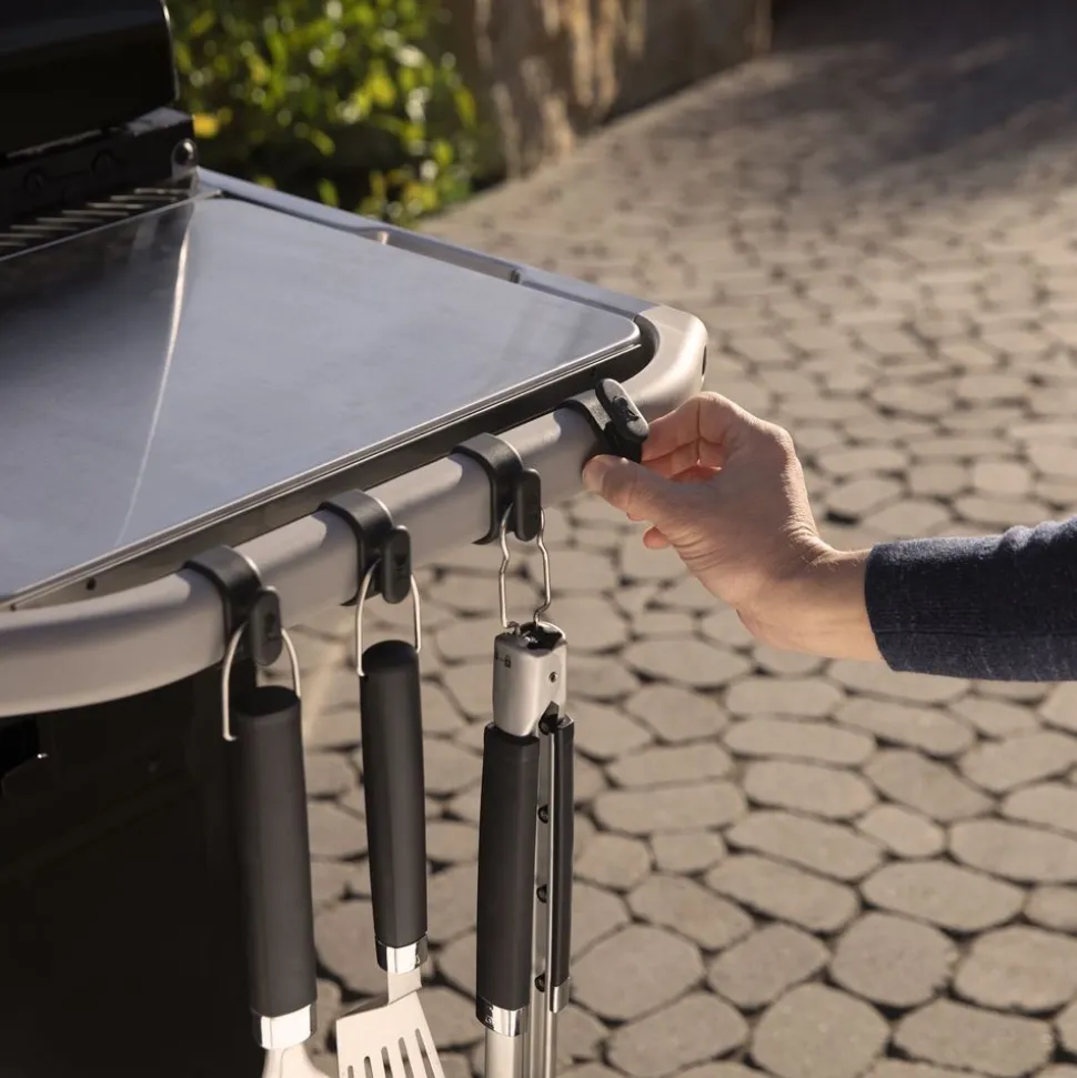 • Onderdelen klikken op de Weber Works™-rail om items binnen handbereik te houden