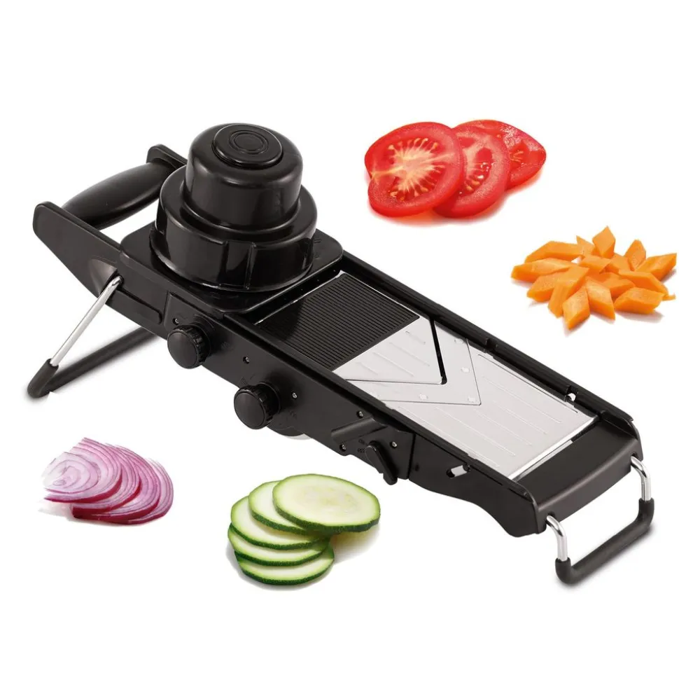De mandoline is een echte alleskunner en zorgt ervoor dat je snel en veilig grote hoeveelheden groente en fruit in plakjes, juliennereepjes of ruitjes en blokjes snijdt.