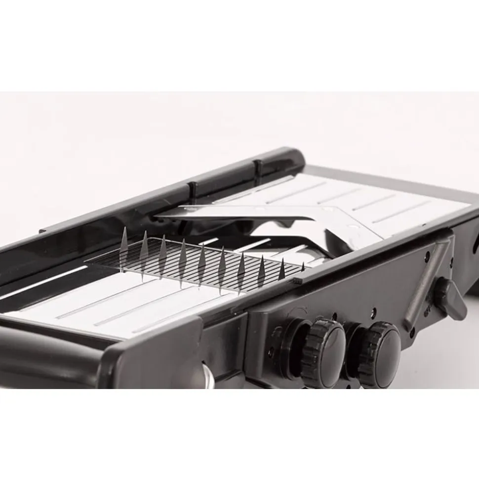 Het hoofdlemmet en de geïntegreerde juliennemessen zijn gemaakt van hoogwaardig, ultrascherp Japans lemmetstaal.
