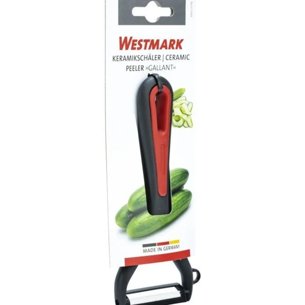 Westmark Gallant dunschiller met keramisch mes zwart en rood 15×6.9×1.8cm