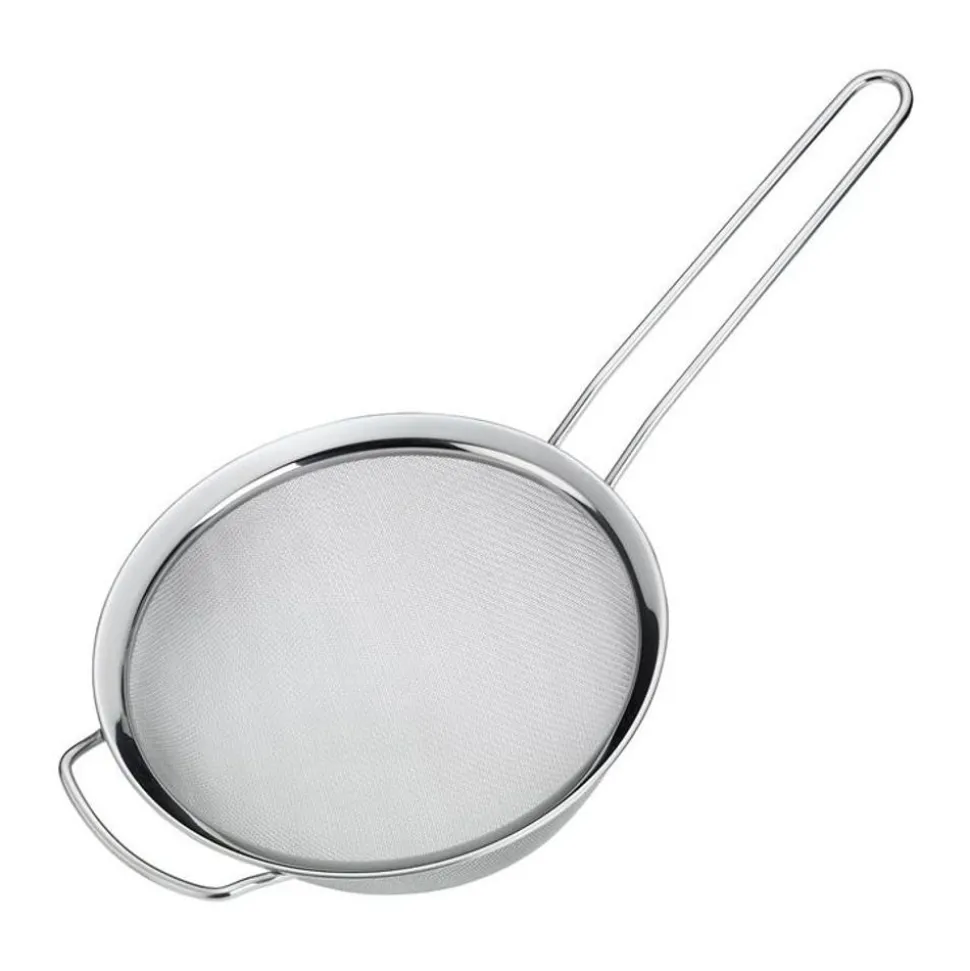 De grote, zeer fijnmazige zeef is ideaal voor het wassen, uitlekken en zeven van groenten, salades en fruit en voor het uitlekken van rijst of pasta. Dankzij het brede draagframe en de roestvrijstalen rand kan de zeef eenvoudig en veilig in de gootsteen, kom of pot worden opgehangen. Verder is de zeef een goede hulp in de thuisbakkerij. Gebak en gebak kunnen worden bestrooid met poedersuiker of cacaopoeder. Dankzij de lange handgreep met ophanglus ligt hij altijd prettig in de hand en kan hij eenvoudig worden opgehangen voor ruimtebesparende opslag.