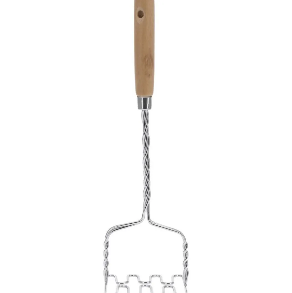 Deze zeer solide aardappelstamper van roestvrij staal vergemakkelijkt de bereiding van aardappelpuree, gepureerde groenten en fruit met zijn speciaal gevormde draadkop. De afgeronde, conisch vormgegeven houten handgreep zorgt voor een comfortabele grip. Na gebruik kan de aardappelstamper eenvoudig met de hand worden gereinigd en dankzij het ophanggat ruimtebesparend worden opgeborgen.
