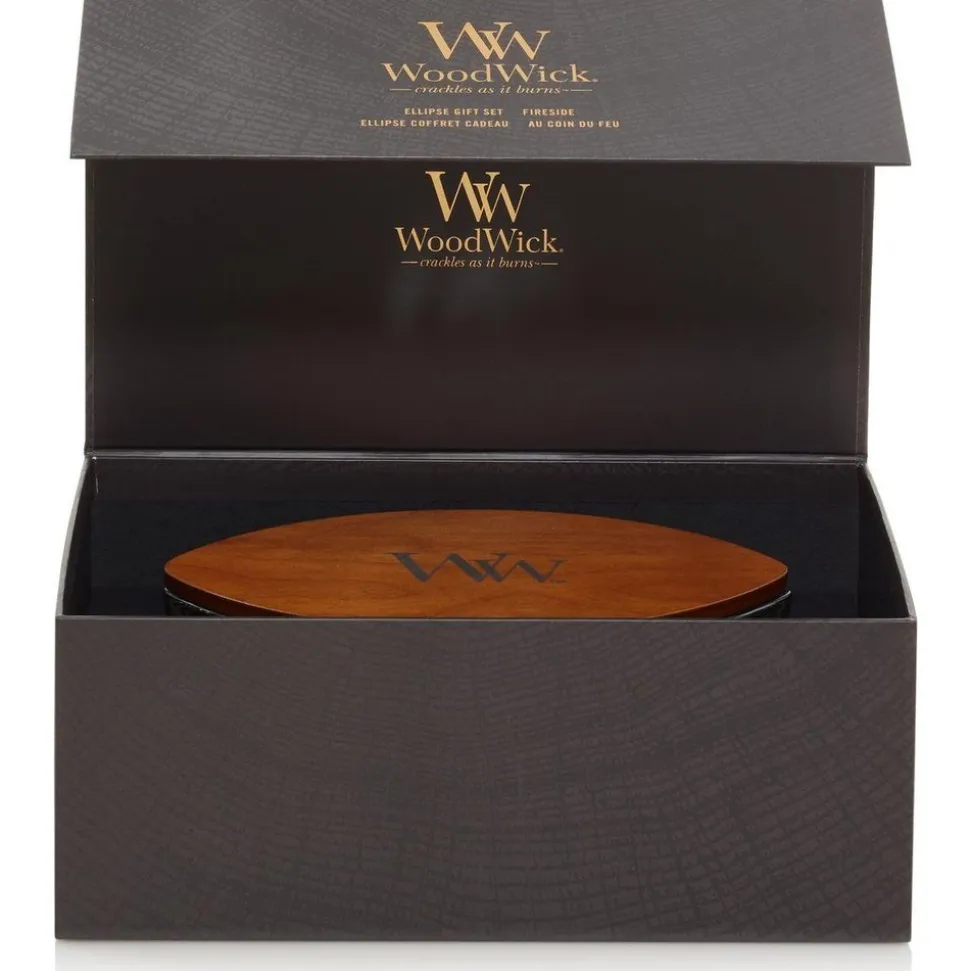WoodWick biedt een elegante geschenkoptie voor elke gelegenheid. Een onderscheidend patroon en satijnen linten creëren een verfijnde esthetiek en verwijzen naar de luxe beleving van de WoodWick geurkaarsen.