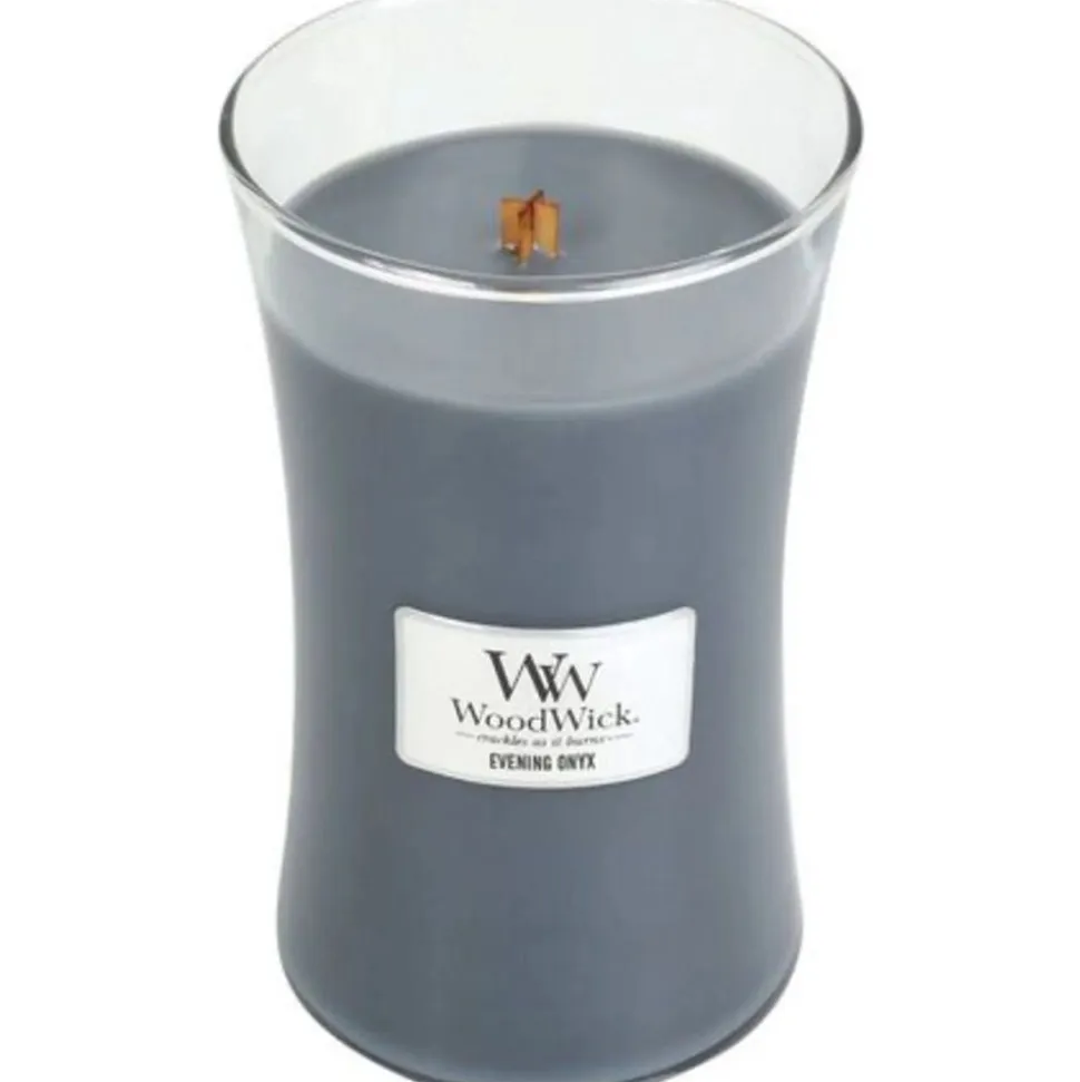 De WoodWick Geurkaars Large Evening Onyx is een luxe geurkaars die zorgt voor een ontspannen en sfeervolle ambiance in huis. De kaars is gemaakt van hoogwaardige sojawas en heeft een houten lont, waardoor er een knisperend geluid ontstaat tijdens het branden. De geur Evening Onyx is een verleidelijke mix van zwarte orchidee, amber en sandelhout, die zorgt voor een warme en mysterieuze sfeer.