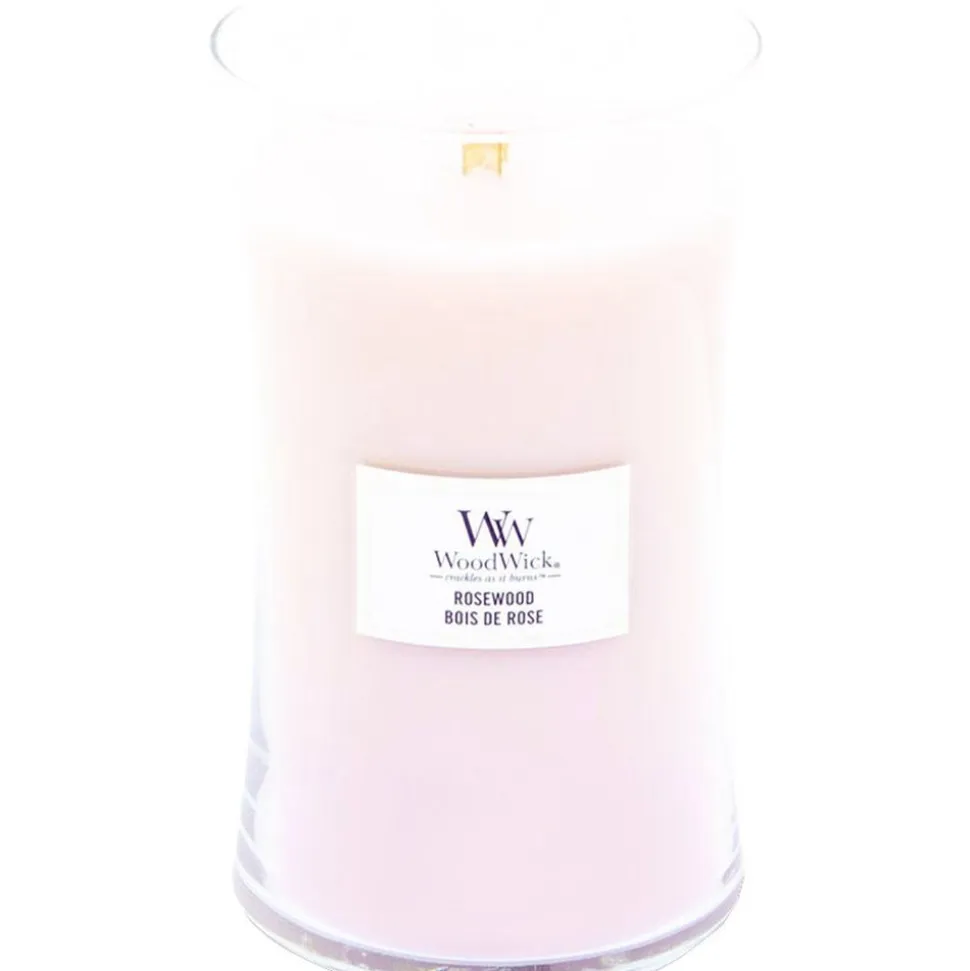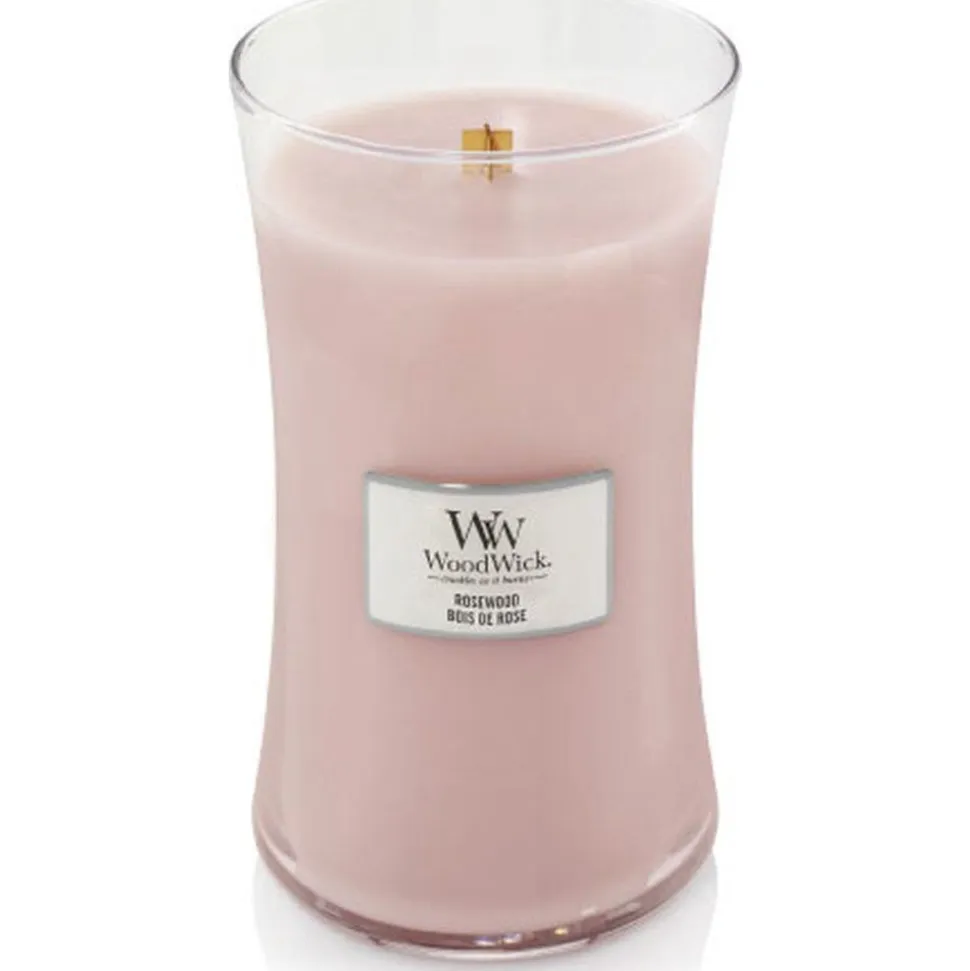 De WoodWick Geurkaars Large Rosewood is een luxe geurkaars die zorgt voor een heerlijke geurbeleving in huis. De kaars is gemaakt van hoogwaardige sojawas en heeft een houten lont, waardoor de kaars een knisperend geluid maakt tijdens het branden. De geur Rosewood heeft een warme en bloemige geur van rozenhout, vermengd met tonen van jasmijn en sandelhout. De kaars heeft een brandtijd van maar liefst 130 uur, waardoor je lang kunt genieten van de heerlijke geur.