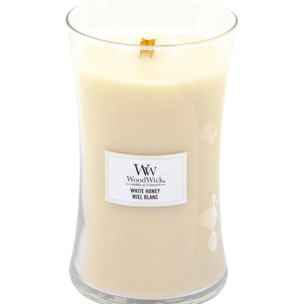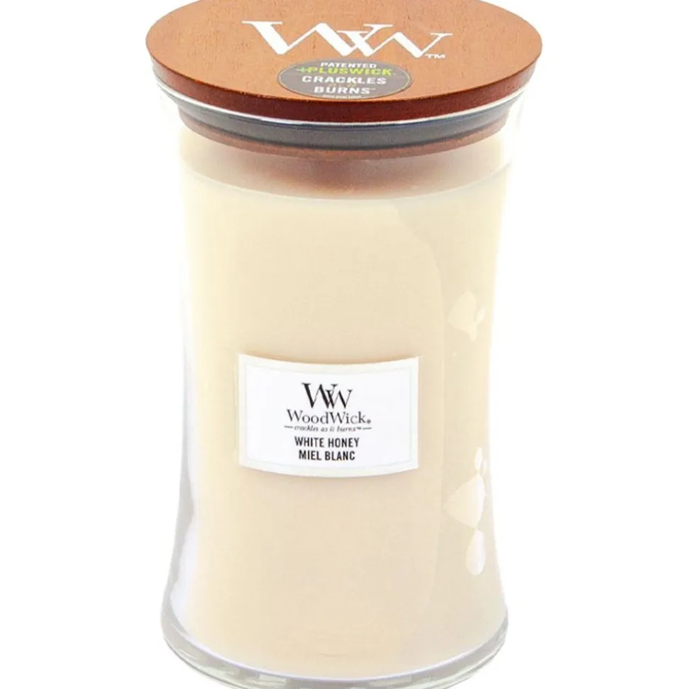 Geuren van zoete gekonfijte oranjebloesem met aanvullende vanille-orchidee en geroosterde toffee. Een zoete en bloemige aroma past perfect in elke ruimte. Details van de Woodwick White Honey geurkaars:- 1 lont- Een heerlijk knapperend geluid door de speciale lont- 130 branduren